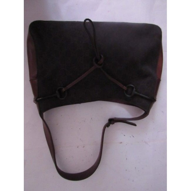 For sale is a Gucci, brown large G logo print canvas & brown leather, roomy, snap top, tote or satchel style shoulder bag with equestrian accents and a leather drawstring top accent! This is a classic, gorgeous bag that is perfect for everyday!