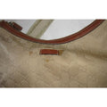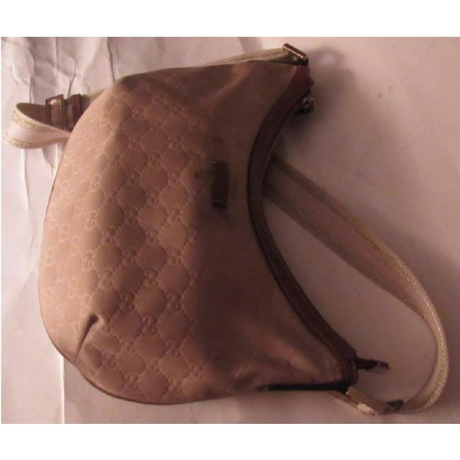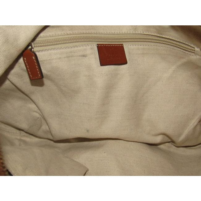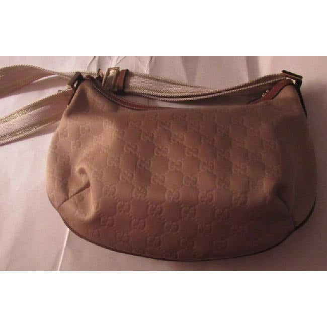 Gucci Newer Light Tan Embossed Large G Logo Print Nylon Chestnut Brown Leather
