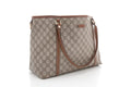 Gucci Nice GG Monogram Canvas Tote. This item is gently loved; wear on bottom exterior corners and leather as well as some stains/marks on exterior as well as interior.
