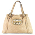 Gucci's double-G logo—an instantly recognizable symbol since the '70s—and horsebit—a house code first introduced in the '50s—lend heritage appeal to a spacious embossed-leather tote designed with adjustable straps for hand, elbow or shoulder carry.