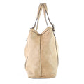 Overall: The exterior shows scuffing/fading (primarily to the smooth trim and bottom corner edges), scratching, and several small marks. The leather handles show dark marks from the buckles, and the glazing along the edges shows cracking. The interior has some faint spots of staining, but otherwise is clean and in excellent condition. The hardware remains bright and shiny with a bit of light scratching to the double-G monogram.
