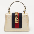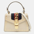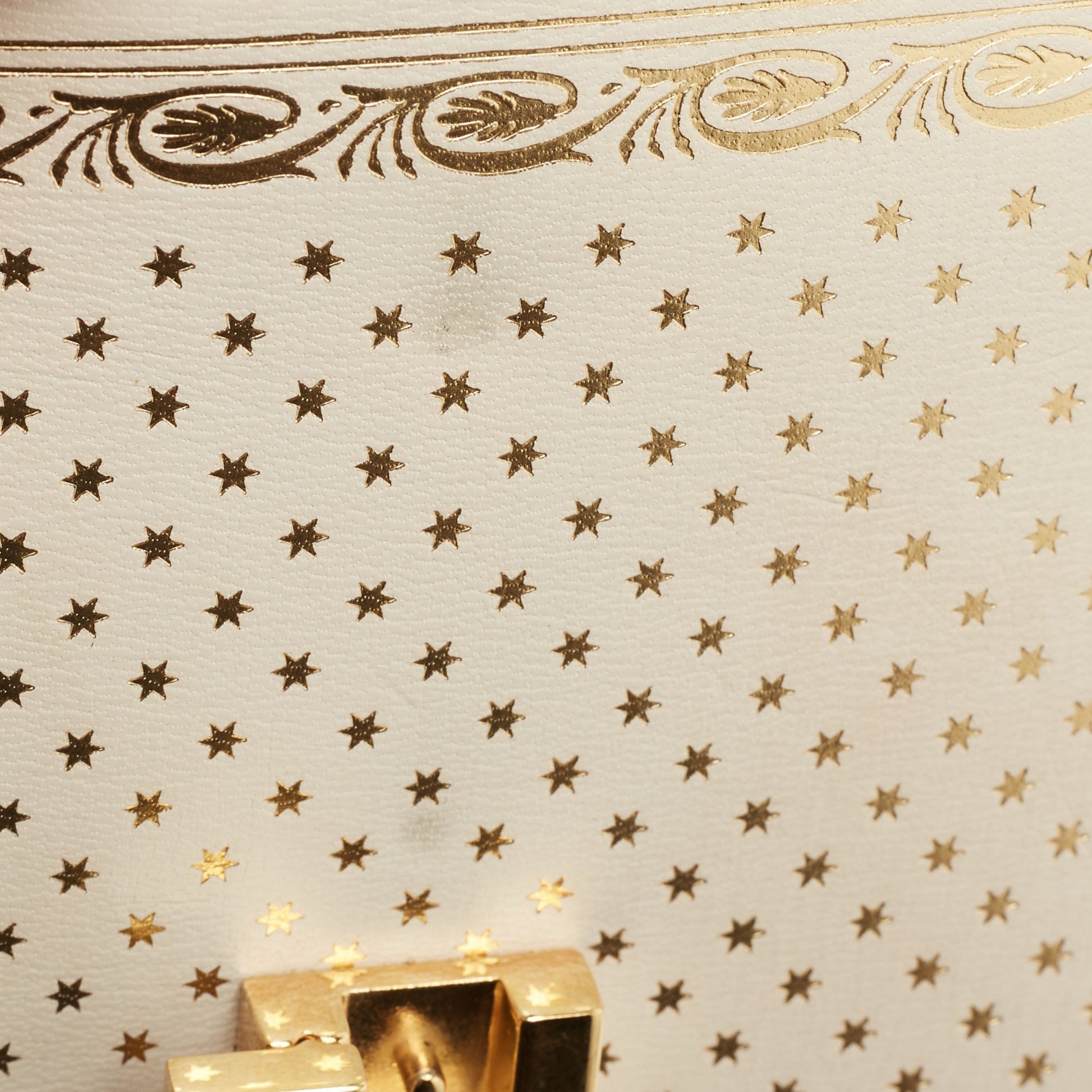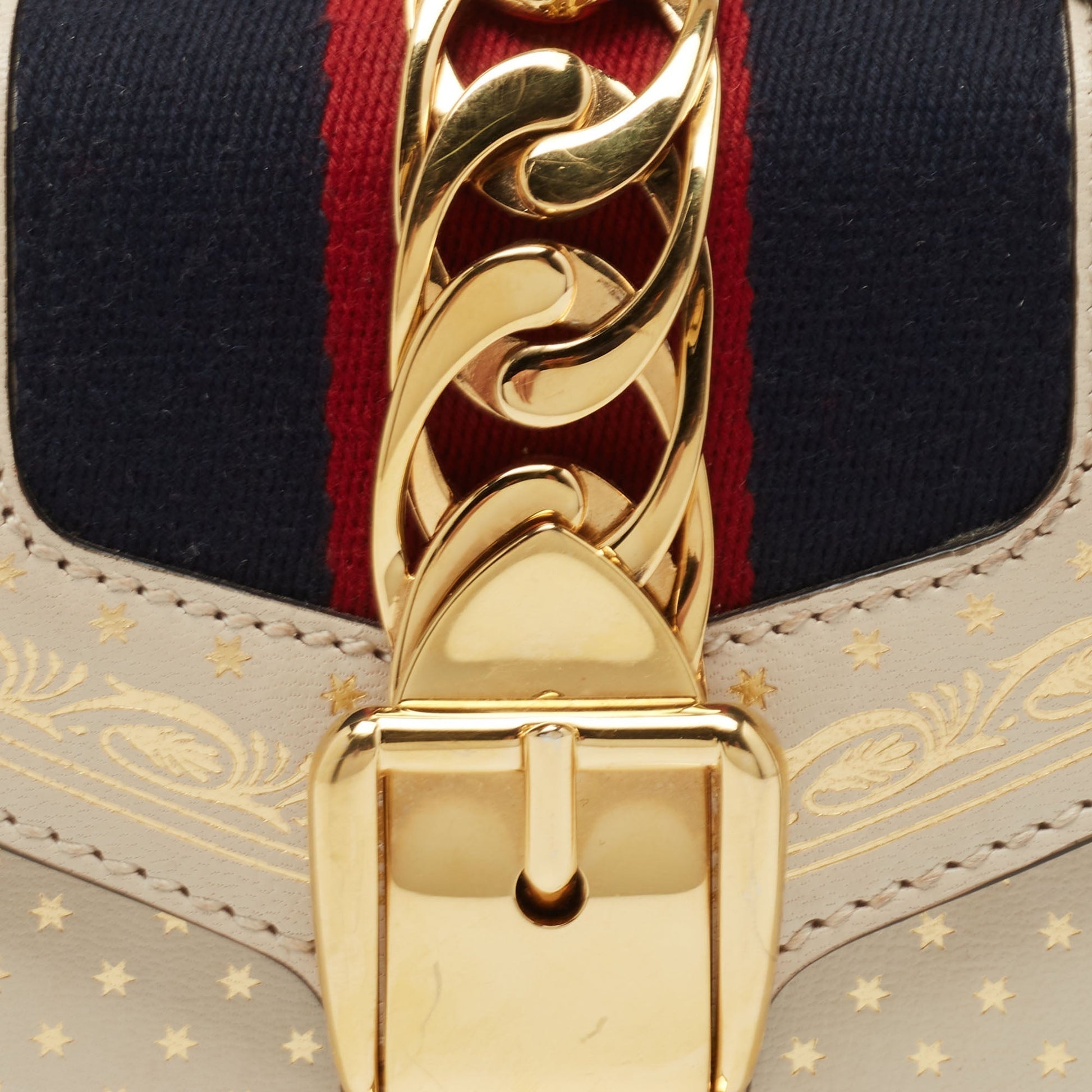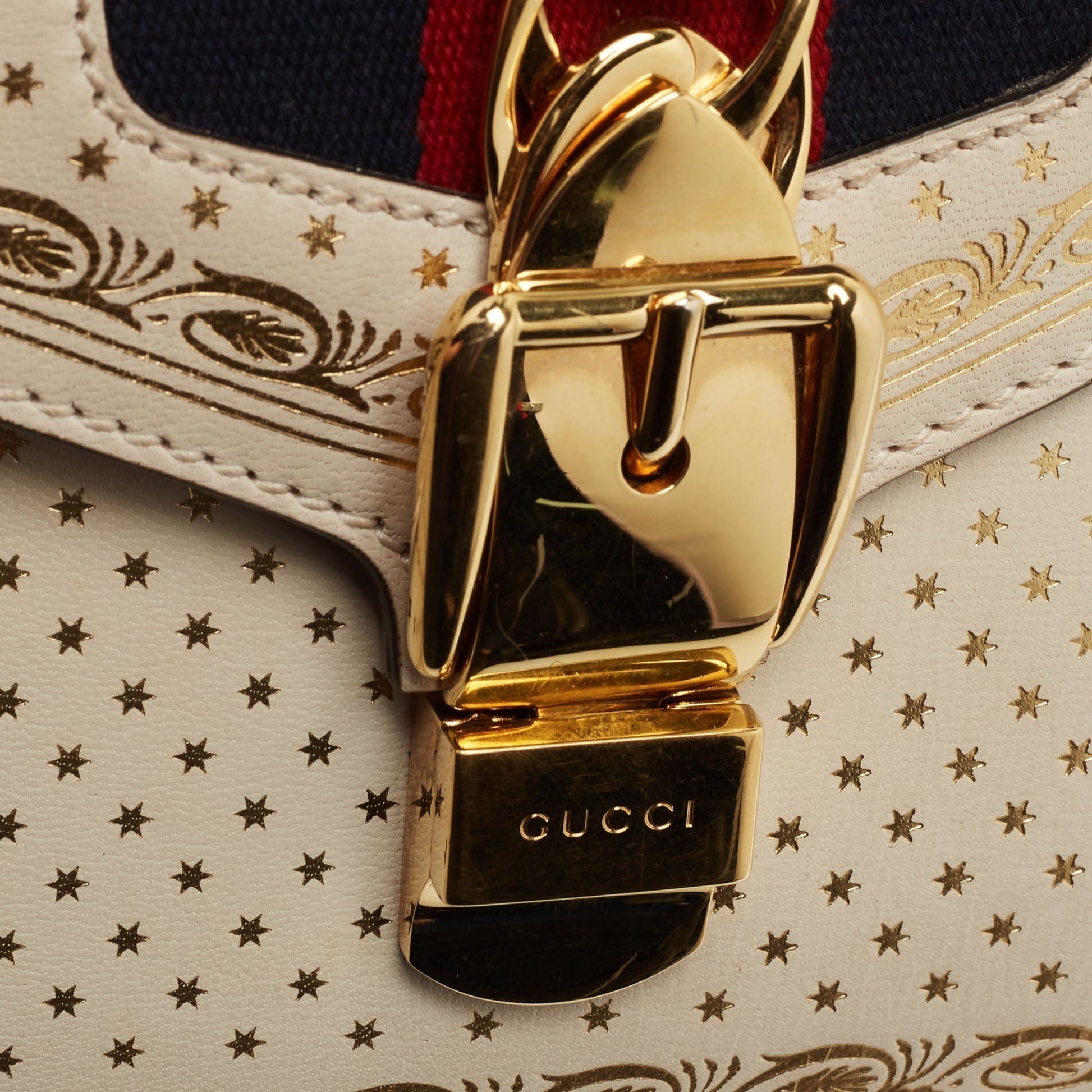 Gucci Off White Star Print Leather Mini Sylvie Top Handle Bag