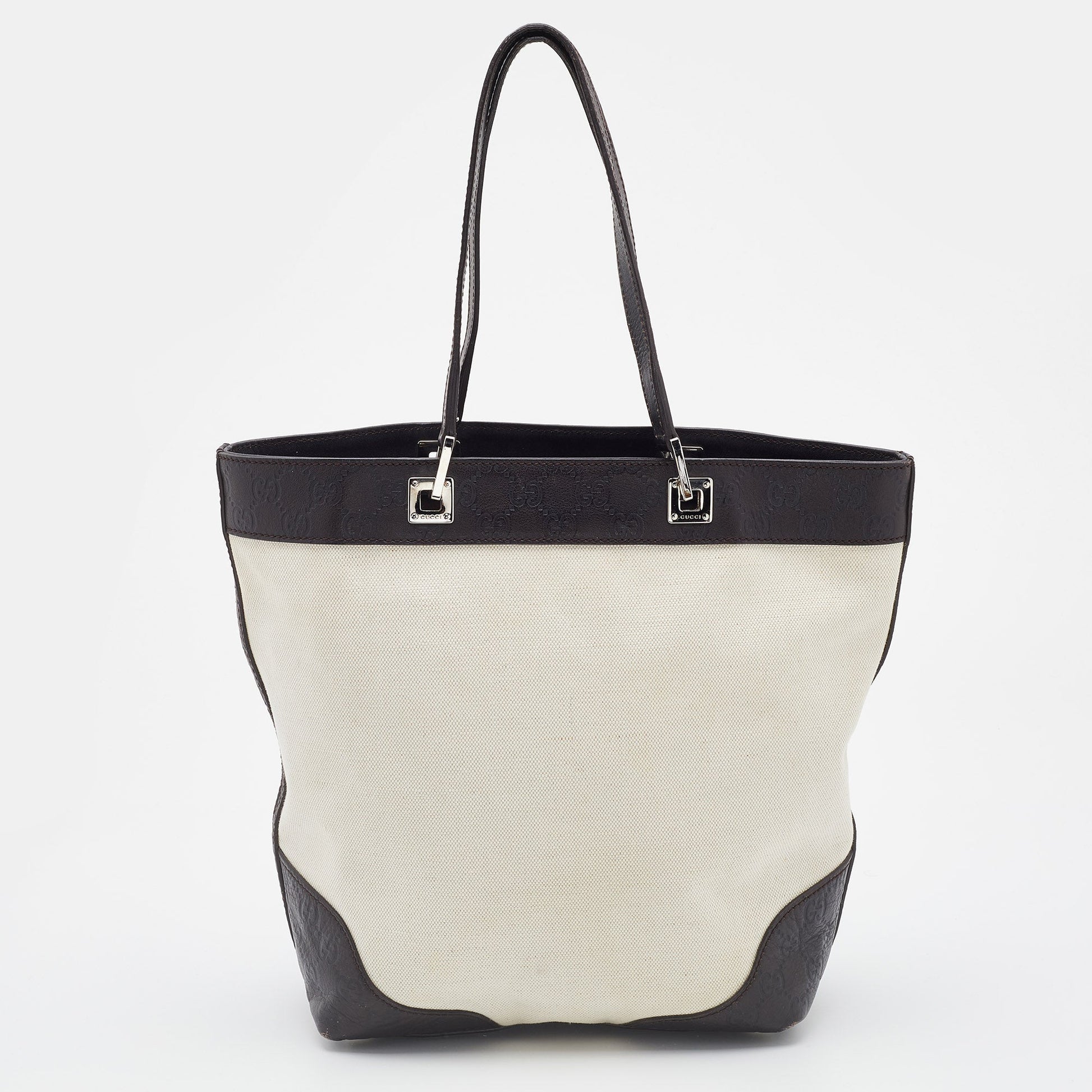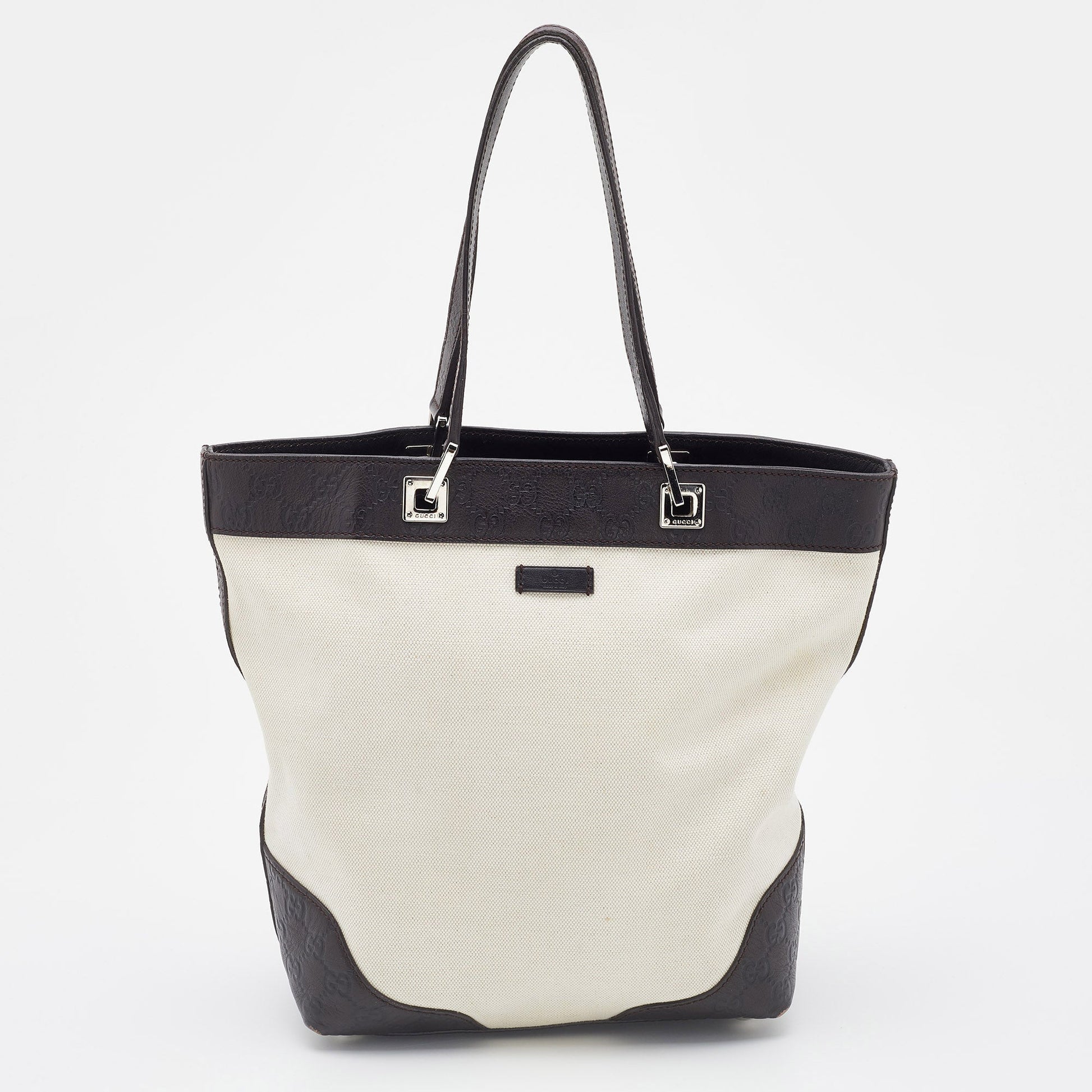 Gucci Off White/Brown Canvas and Guccissima Leather Tote