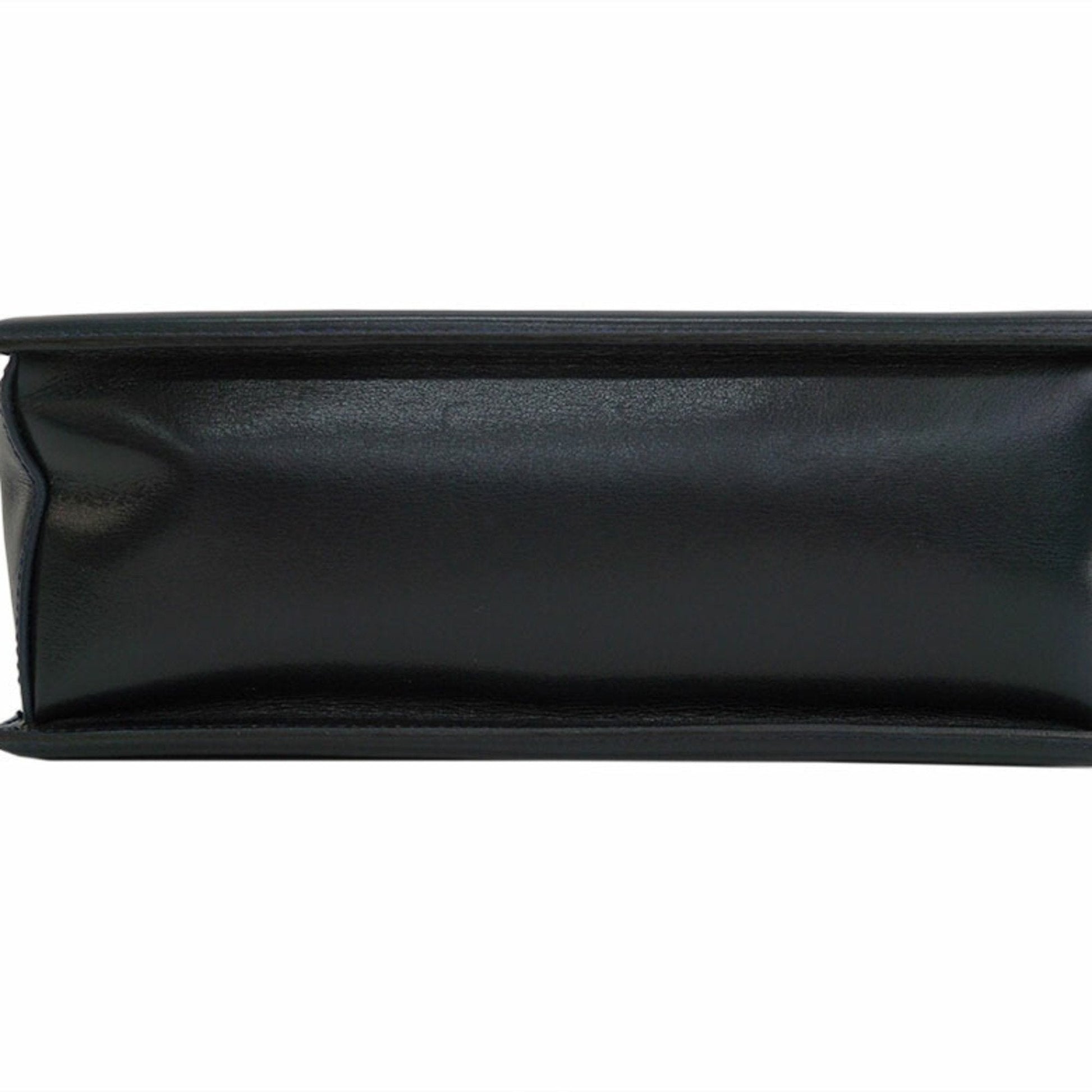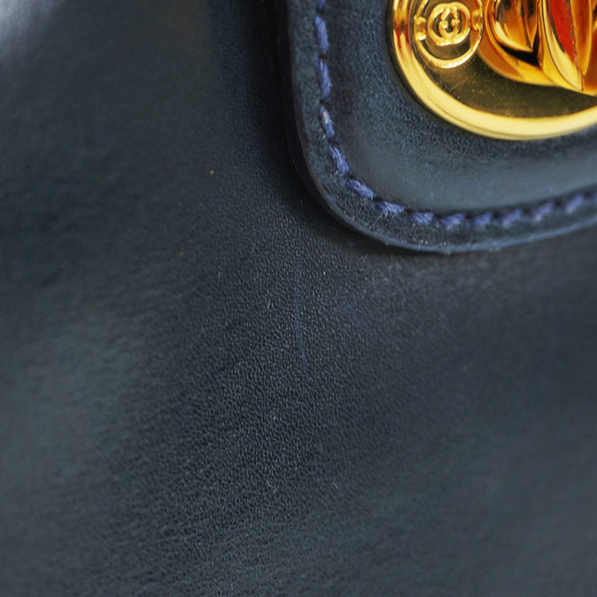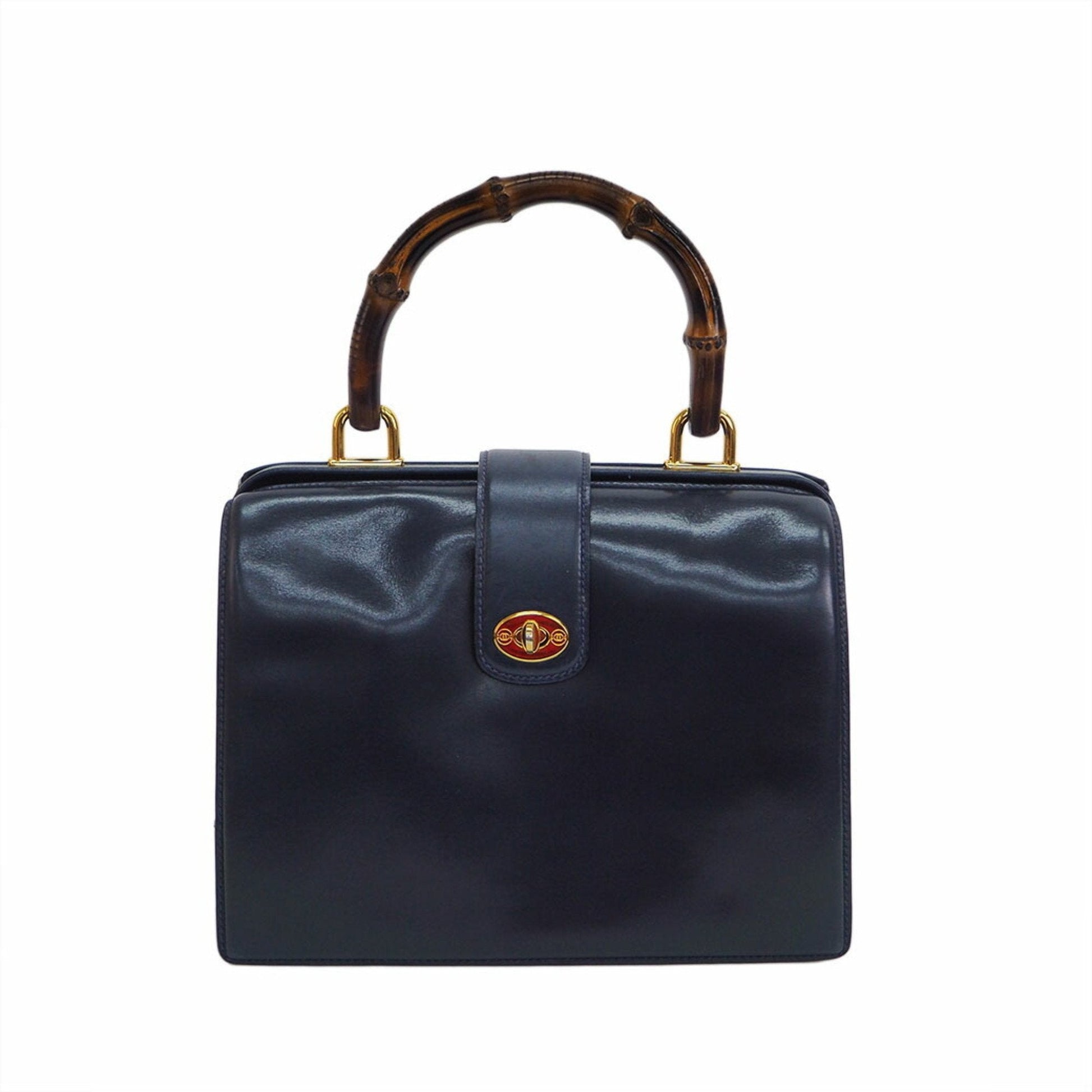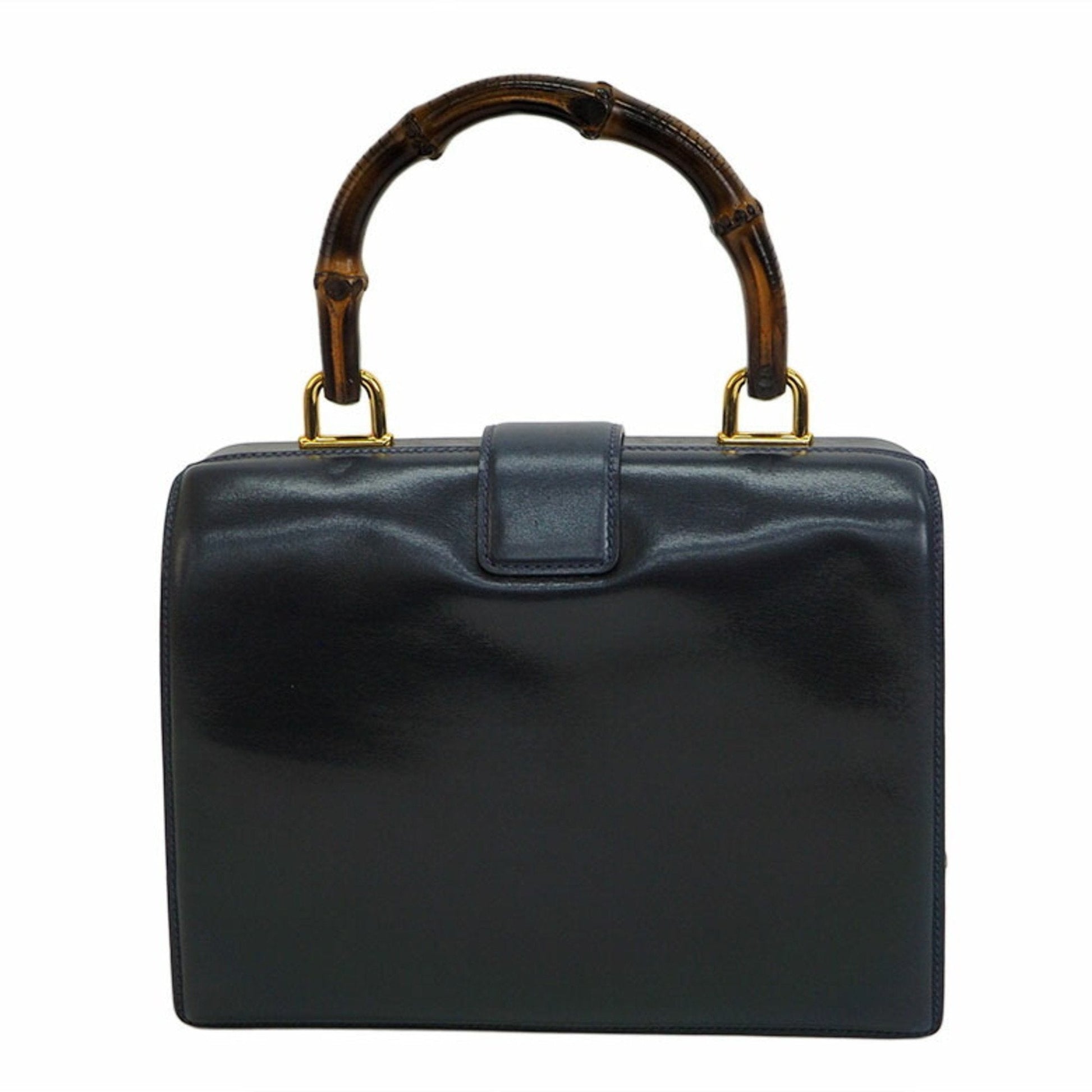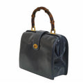Gucci Old Bamboo Handbag Gold Crest Navy Leather Women's