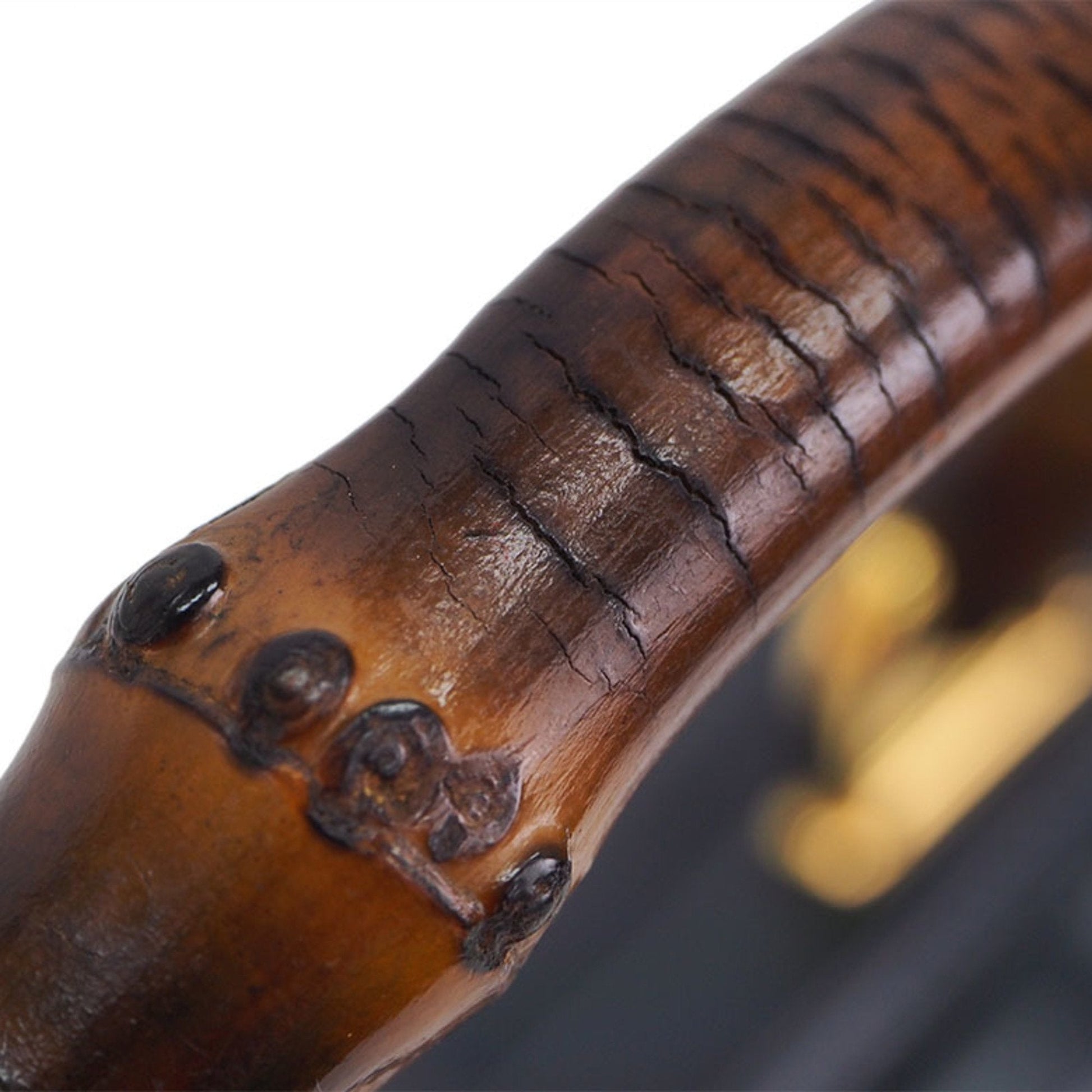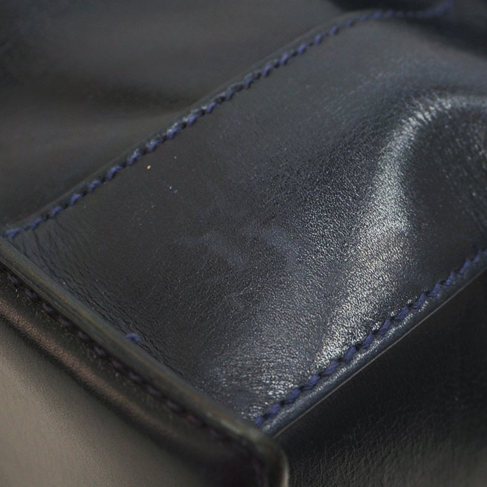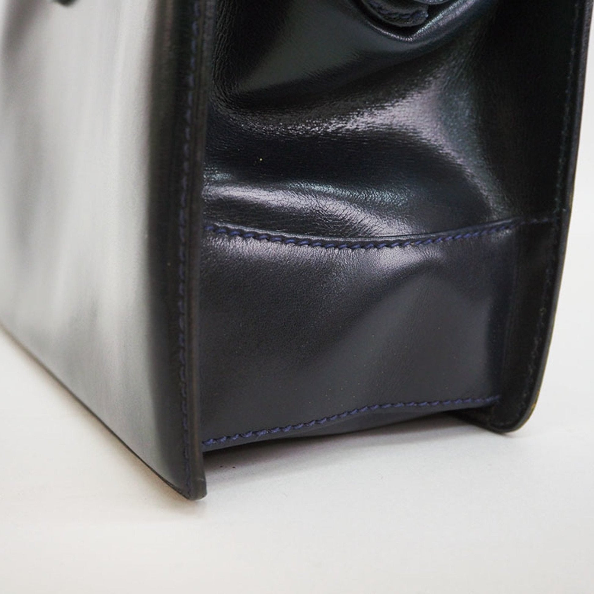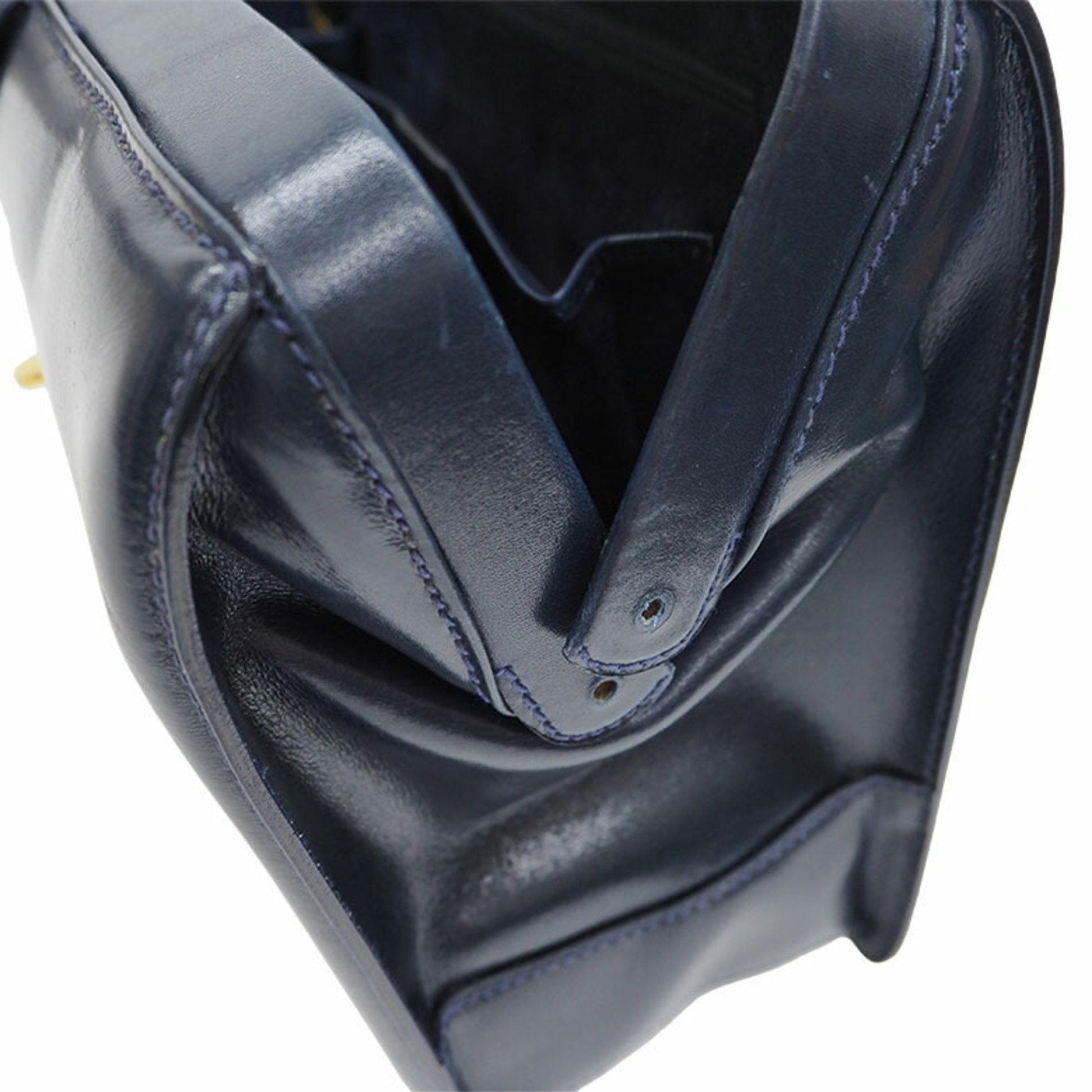 Gucci Old Bamboo Handbag Gold Crest Navy Leather Women's