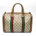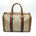 GUCCI Old Gucci Vintage Mini Boston Bag Handbag Barrel Unisex 1970's 70'S Sherry Line GG Pattern/Leather Gold Hardware Brown/Beige