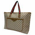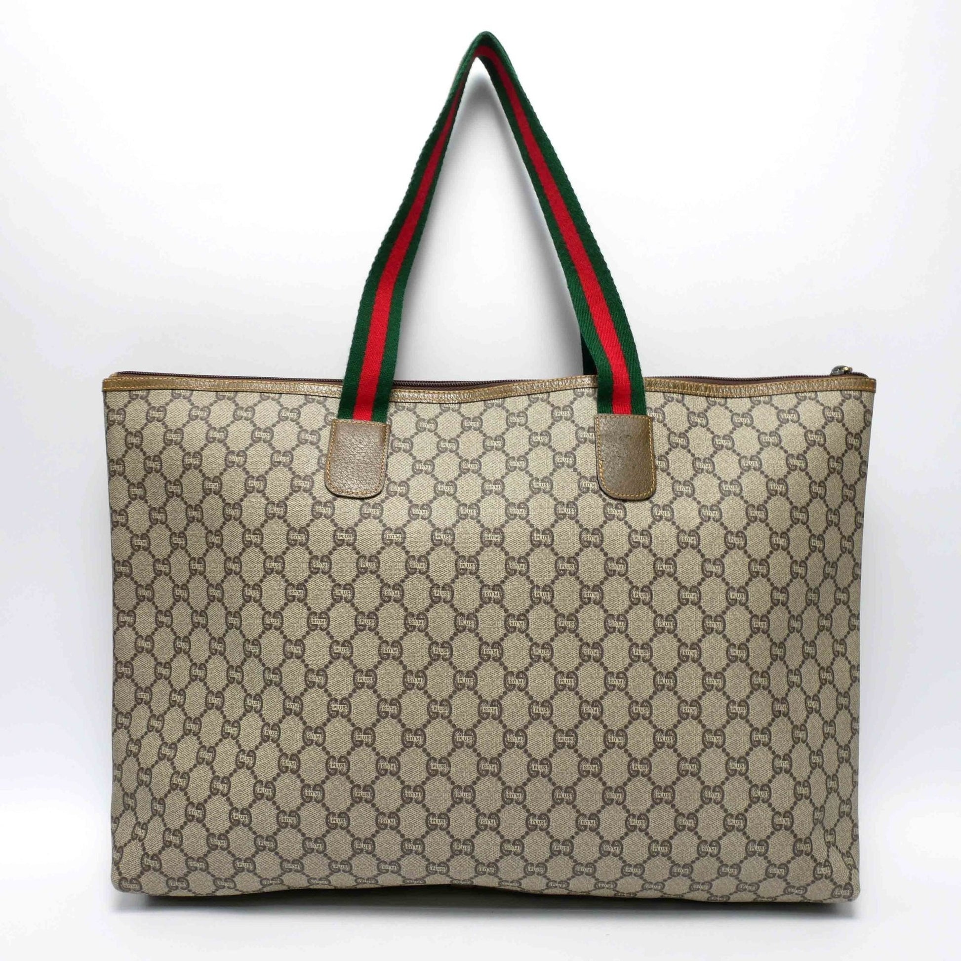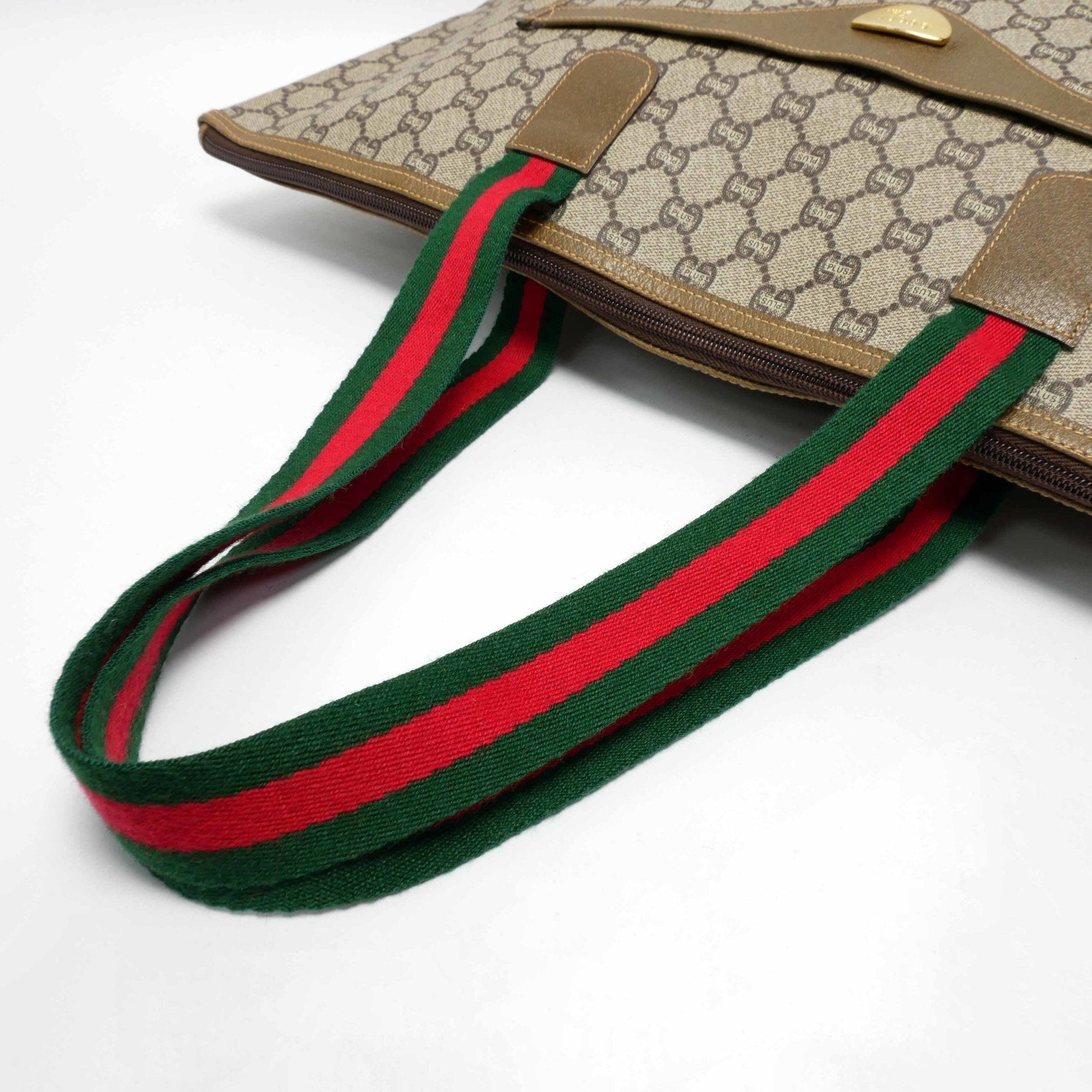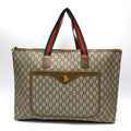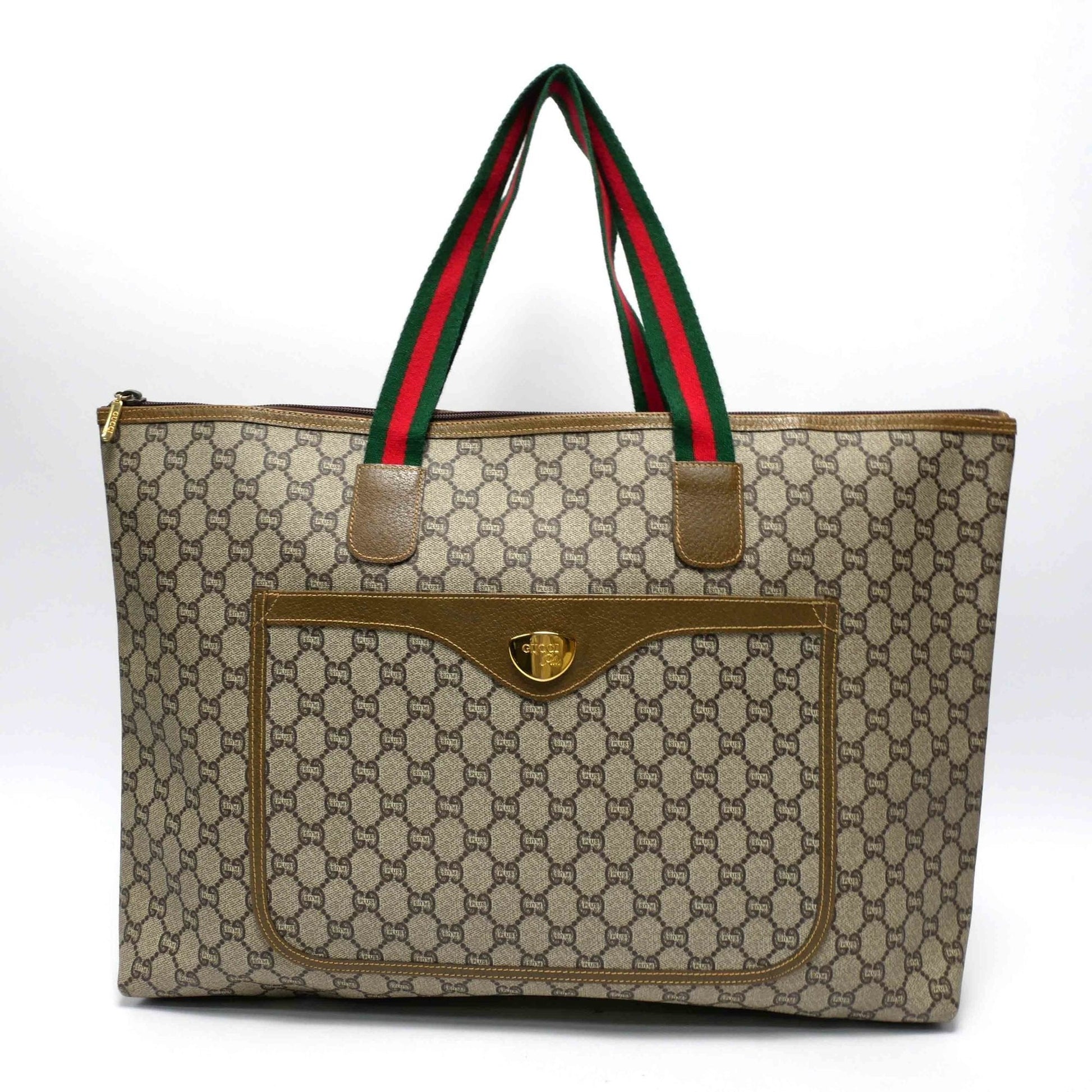 GUCCI Old GucciPLUS Plus Tote Bag Travel Boston Unisex 1970s 70'S GG Pattern Sherry Line/Pigskin Gold Hardware Brown/Beige