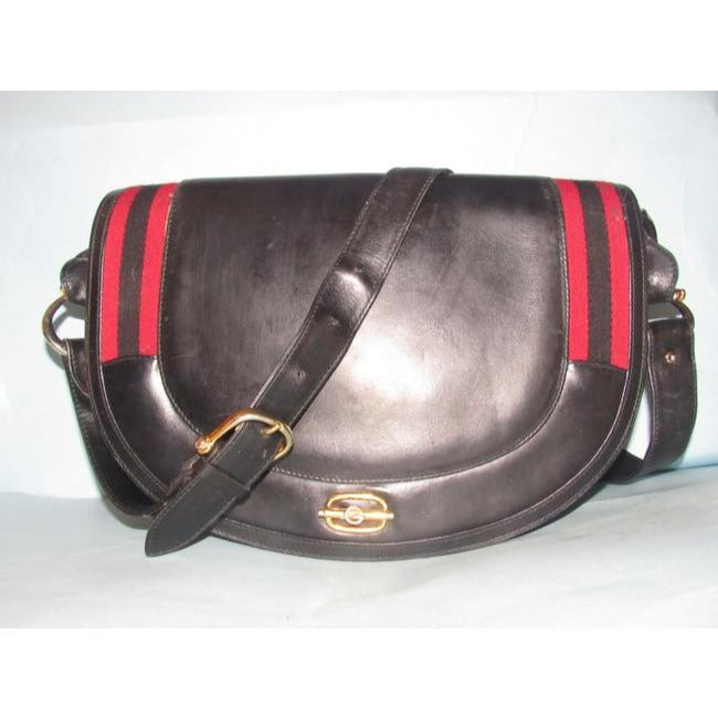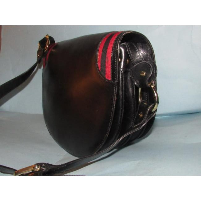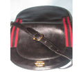 Gucci One Of A Kindearly Supple Black Leather With Navy And Red Stripe Accents Canvas Shoulder Bag
