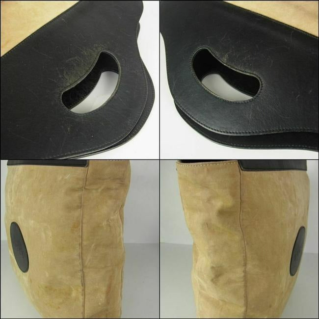 For sale is a vintage, Gucci, ivory suede and black leather, rare, large tote with a leather oval accent with 'Gucci' embossed at the center and an open top! It is a unique, retro bag from Gucci, perfect for any time of year!