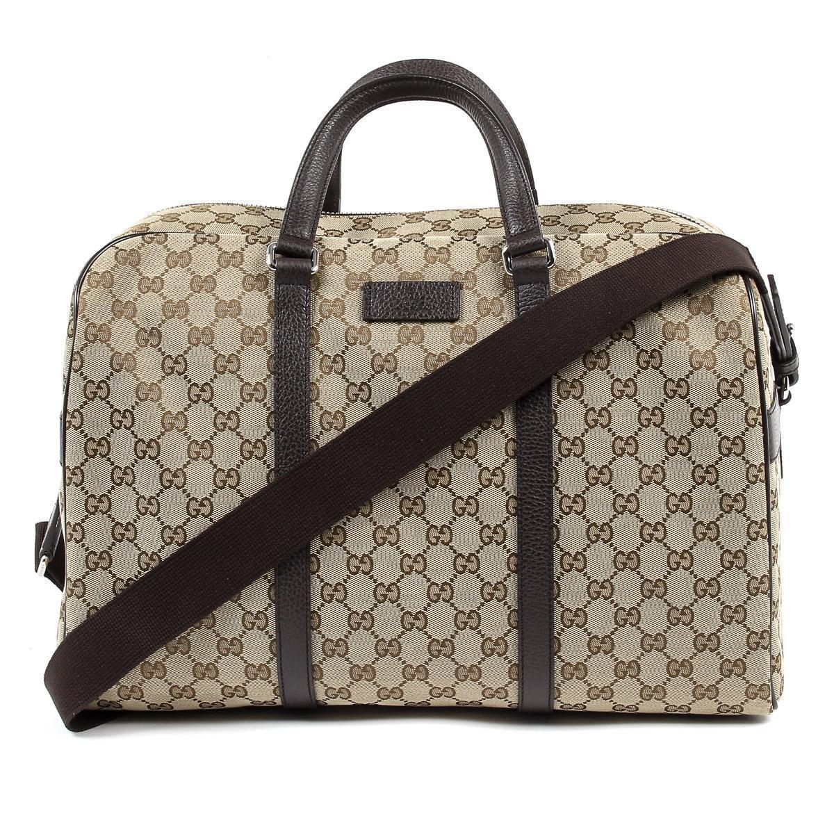 Gucci Original GG Canvas Carry On Duffle Bag. This is the perfect designer handbag to travel with and has plenty of storage space. Great carry on bag when traveling by airplane. This design is very classy and traditional. Goes well with most looks and is easy to carry or wear over the shoulder. Includes ity cards and Gucci dust-bag.