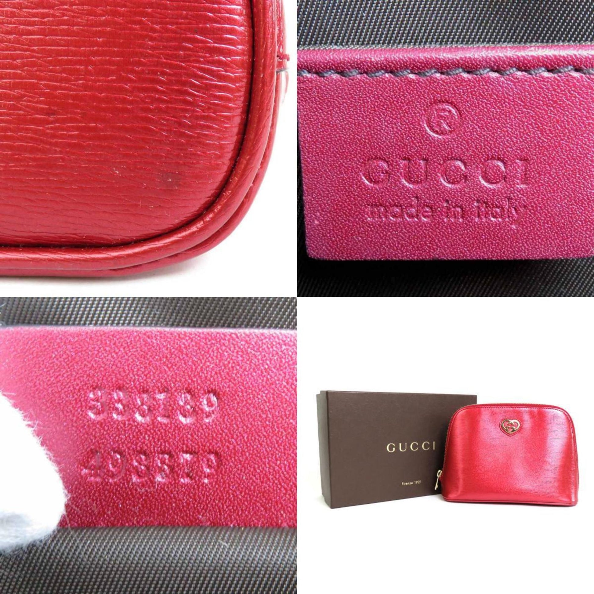 GUCCI Pouch Leather Metallic Red Gold Ladies 338189