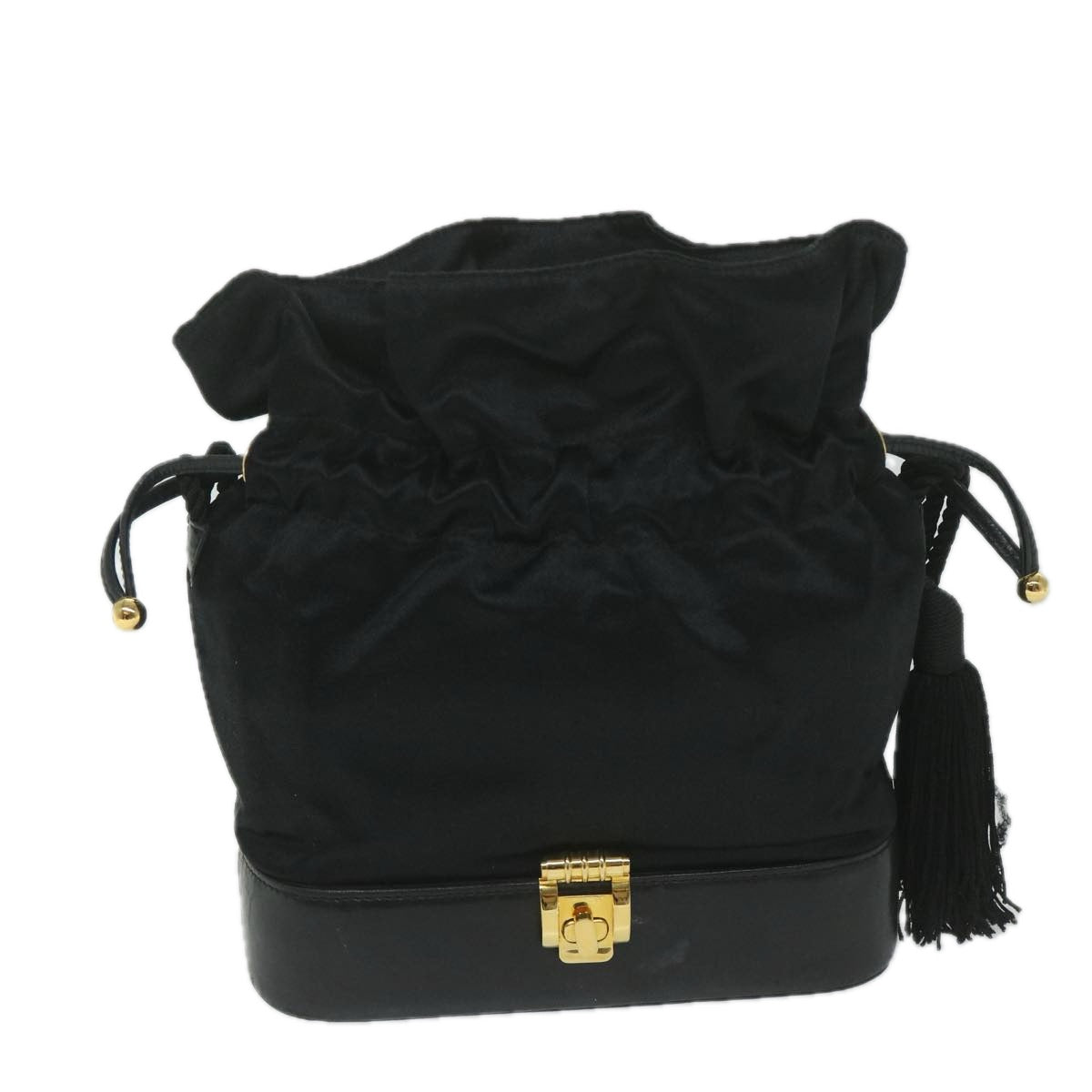 GUCCI Purse Shoulder Bag Satin Black Auth ai721