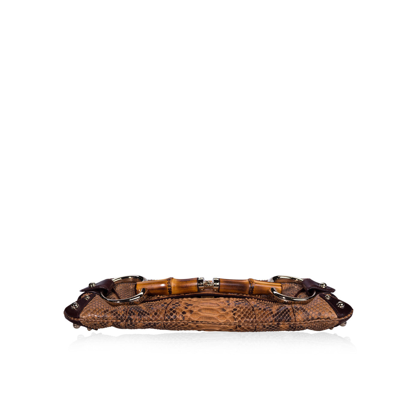 Stand out from the crowd with this luxurious exotic python flap closure shoulder bag Gucci a timeless piece with the signature horsebit detail. This elegant bag features antique gold hardware, perfect for an evening out.