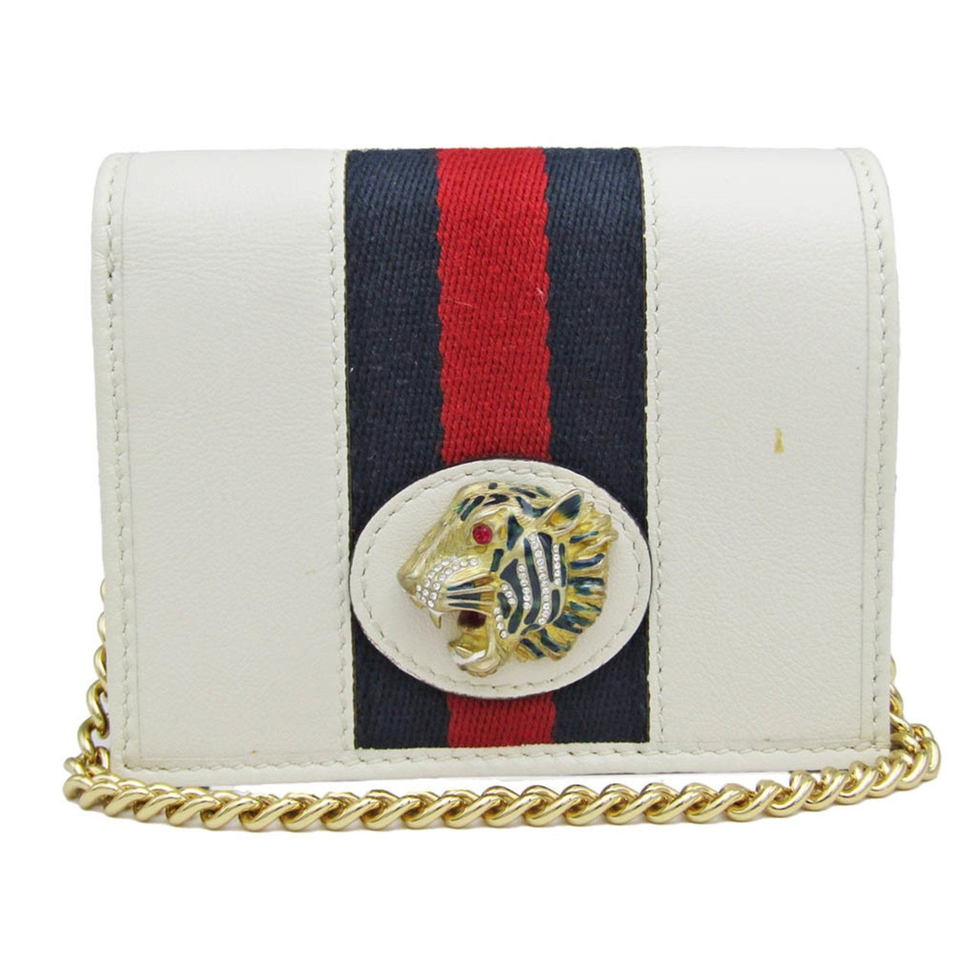 Gucci Rajah Tiger 573790 Women's Leather Chain/Shoulder Wallet Off-white