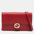 Gucci Red Leather Interlocking G Flap Chain Clutch