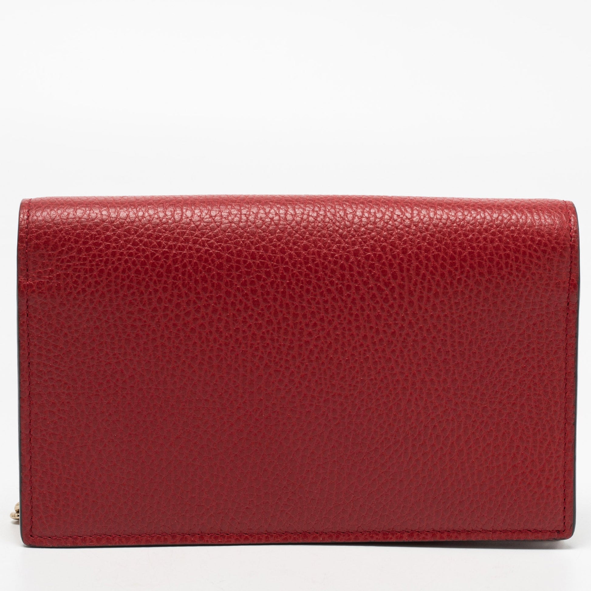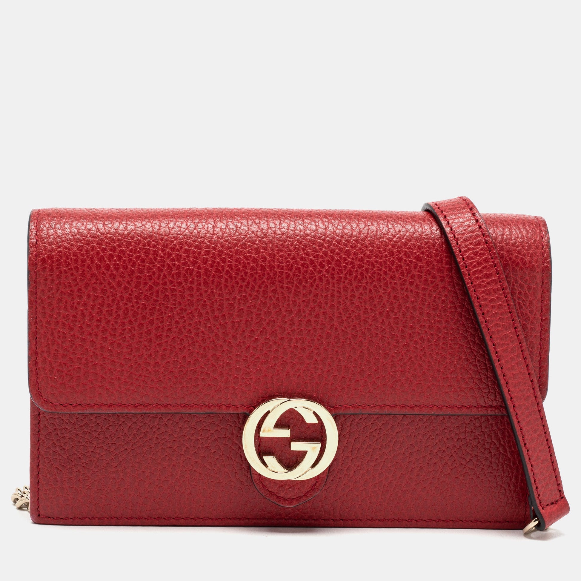 Coming from Gucci this clutch bag will showcase your fashion forward choice. Presenting a lovely shade of red and the Interlocking G logo on the front flap this bag proves to be an impeccable and contemporary addition to your closet.