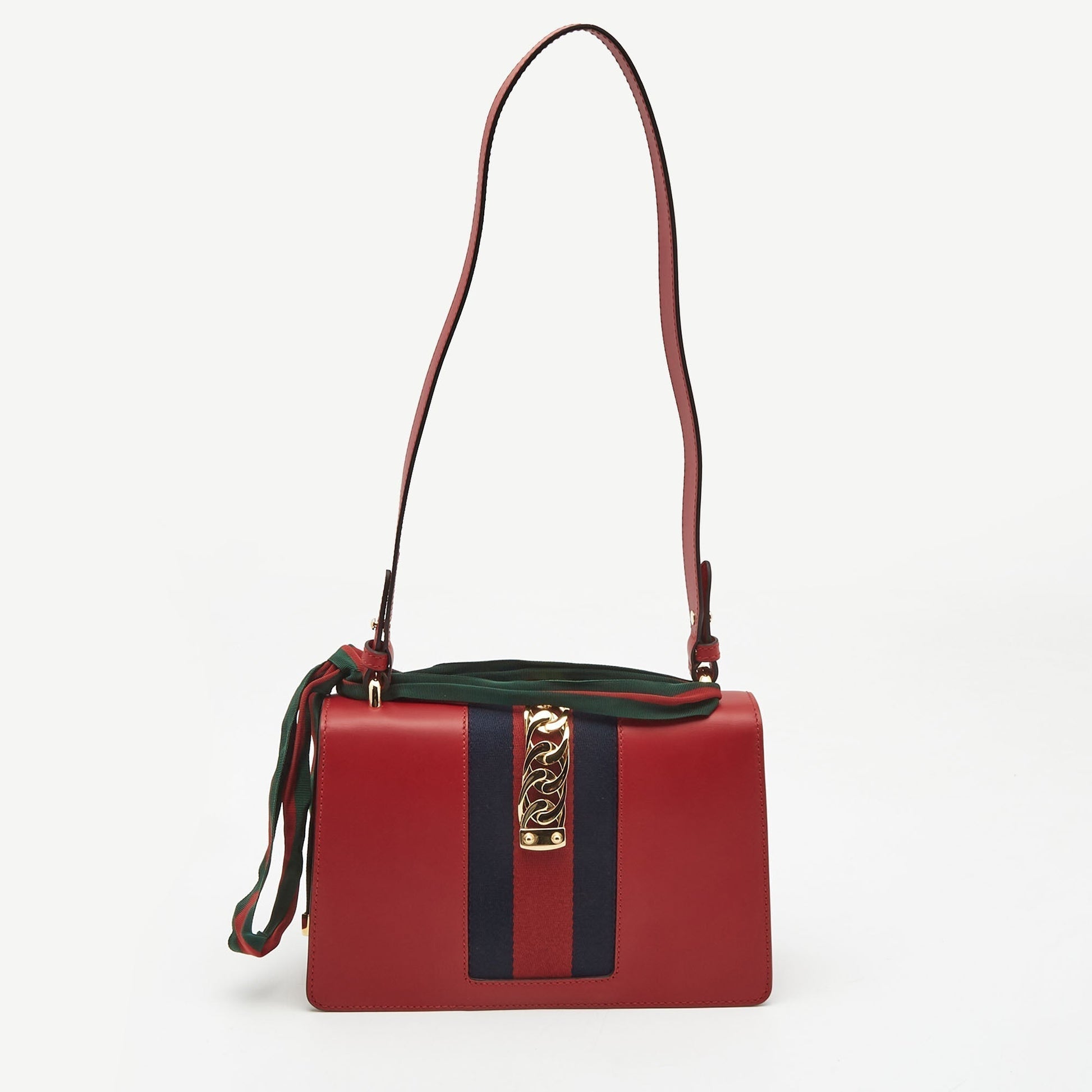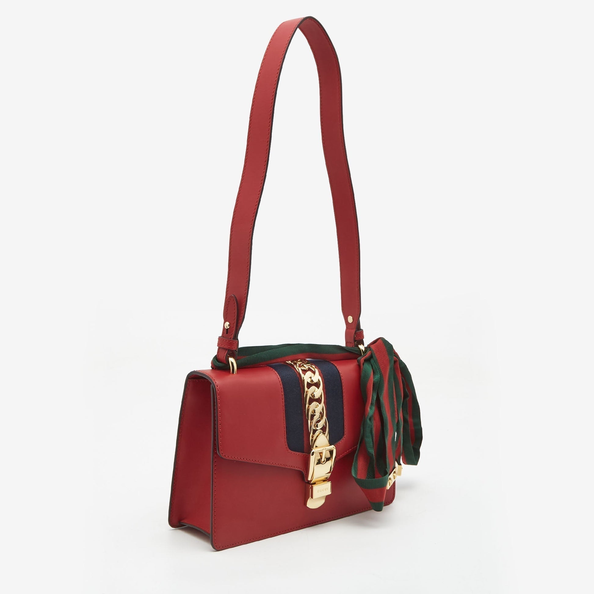 Gucci Red Leather Small Web Sylvie Shoulder Bag
