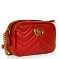 Mini Munchkin Marmont! Sheƒ??s so cute and glam. Sheƒ??s so small but mighty. Sheƒ??s the bag everyone needs in their lifeƒ??and sheƒ??s a bag we must protect at all costs. The Gucci Marmont collection took the world by storm without even trying. Literally everyone knows this line, whether youƒ??re a bag enthusiast or not, itƒ??s pretty hard to avoid it given how we see a Marmont 18 million times a day. Carefully crafted in red matelass?? leather, this baby beauty is the perfect accessory for any cool girl in desperate need of a mini accessory with a love for luxury and all-things-colourful. Ideal for every day use, you can easily carry all your tiny essentials inside while remaining effortlessly cool, sleek and stylish. An iconic piece from the brand, any bag from the Marmont collection is an absolute classic that every woman should have in her wardrobe.