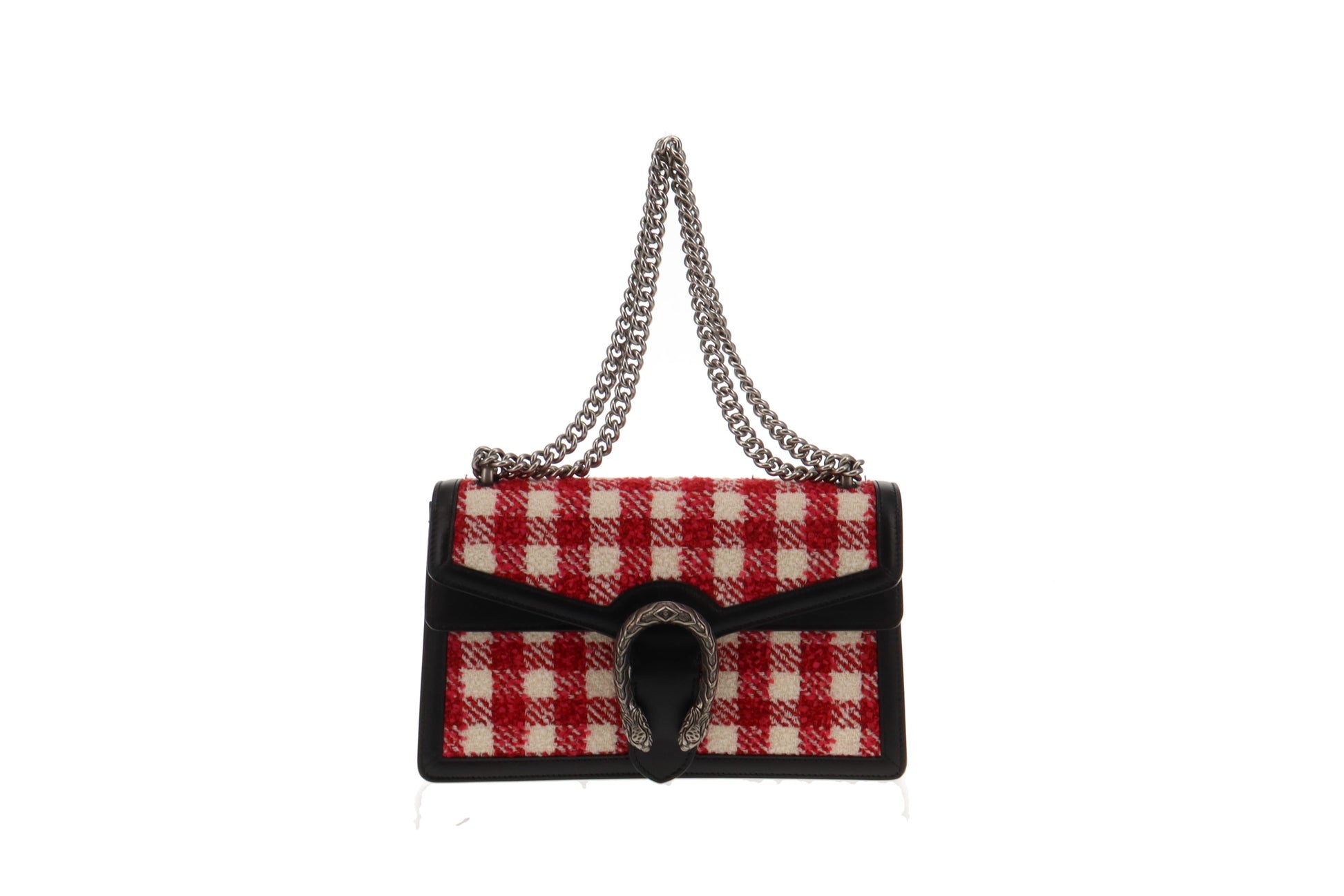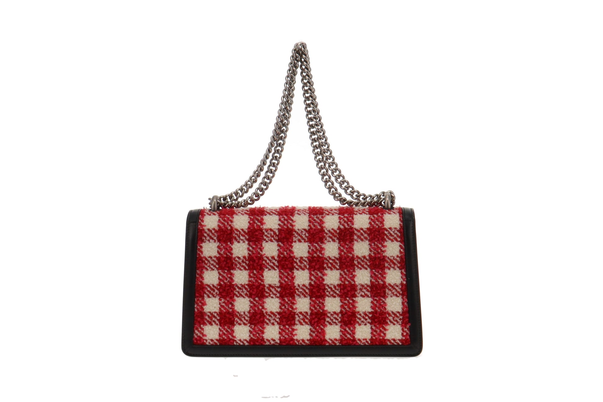 This Rare Dionysus in a size small is crafted from Red Tweed featuring silver tone hardware. Its� long chain strap can double as a shoulder strap or crossbody.