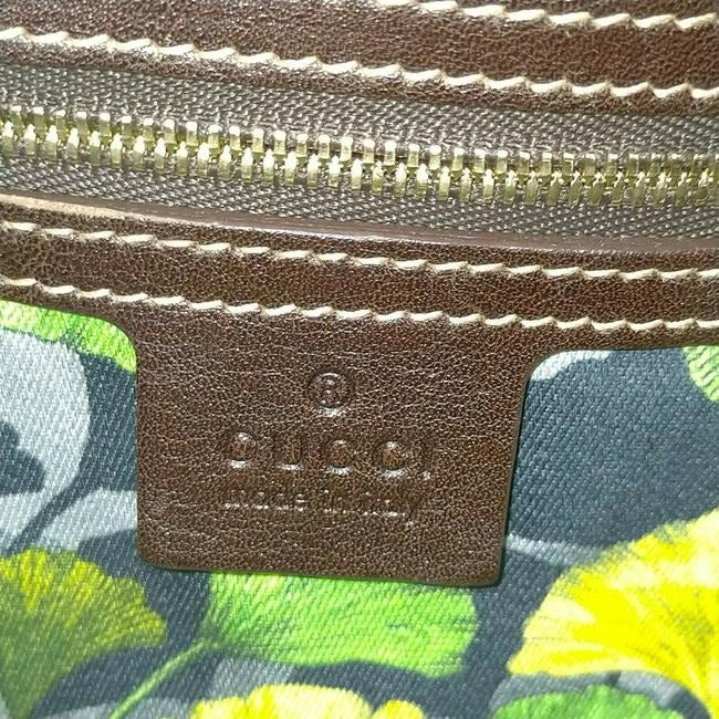 Inside, there is one main compartment with a back zipper pocket, lined in a floral canvas print. Above the pocket there is a leather tag embossed with 'Gucci made in Italy' on one side. The purse has a serial #181500-2123. embossed on the back of the tag The bag has minimal wear to the exterior and the lining is very clean! In my opinion, it looks almost unused!