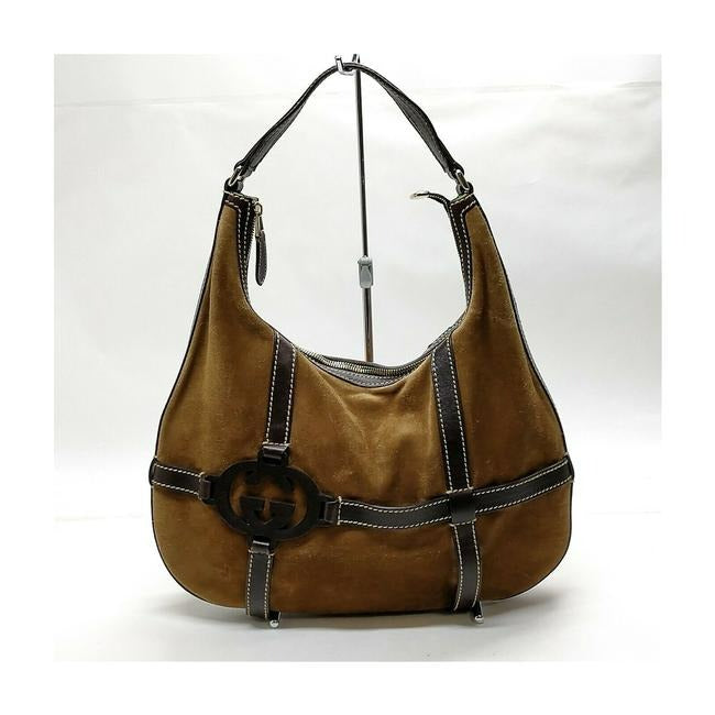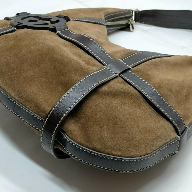 Gucci Reins Britt Xl Brown And Black Suede Leather Hobo Bag