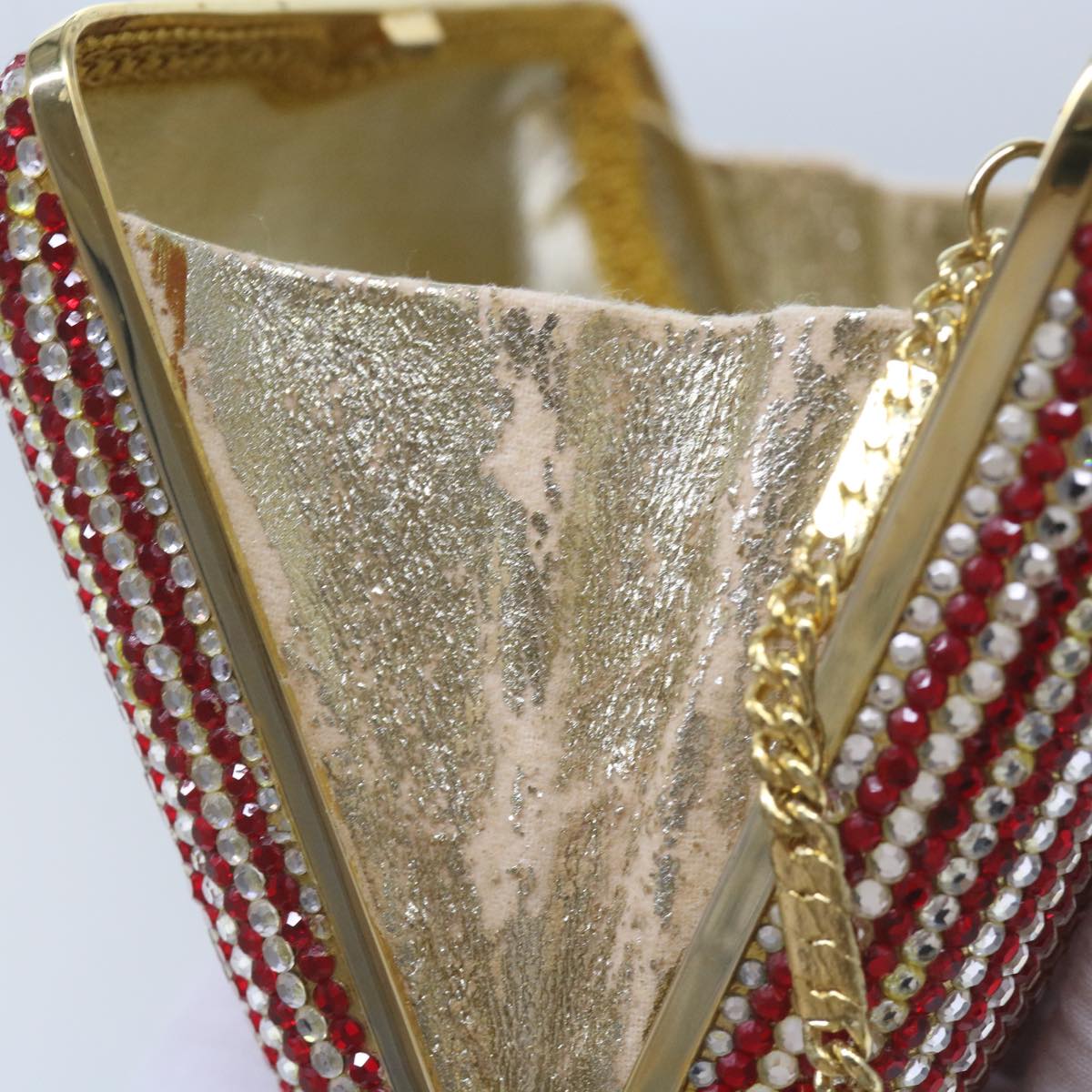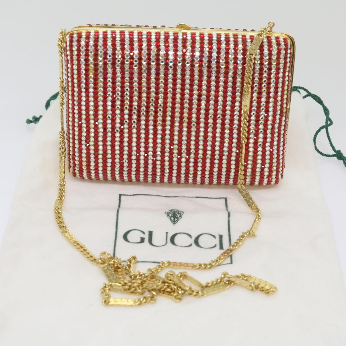 GUCCI Rhinestone Chain Shoulder Bag Red Auth 68521A