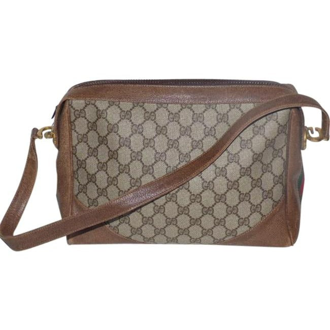 Gucci Sale Designer Purses Large G Logo Print Coated Canvas Brown Leather Red And Green Striped Sides
