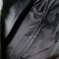 The bag is a two handle, tote or satchel style purse by GUCCI. It is made from heavy, black canvas with the large Gucci, G logo print and black leather. It has a zip top closure with two hard leather handles, thick black leather trim and top edges. There is an exterior, envelope close pocket that is attached to the bag. The interior is in excellent overall condition with a matching fabric lining that is very clean.