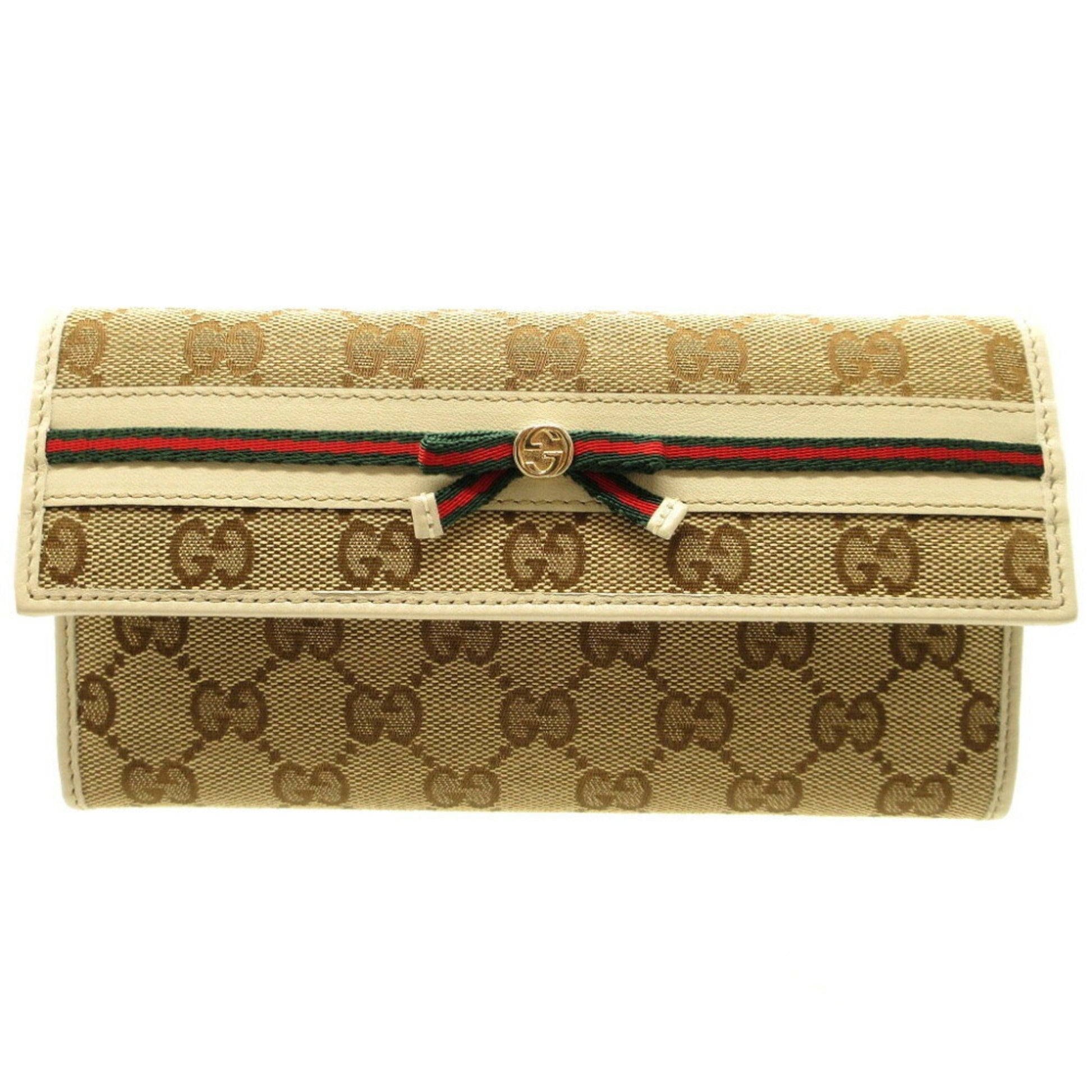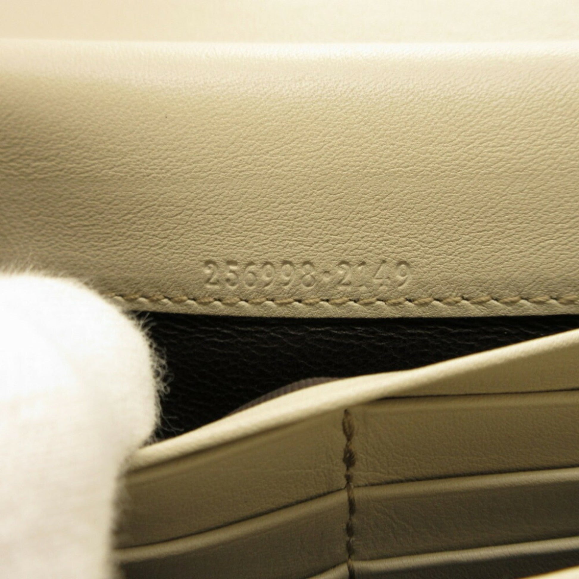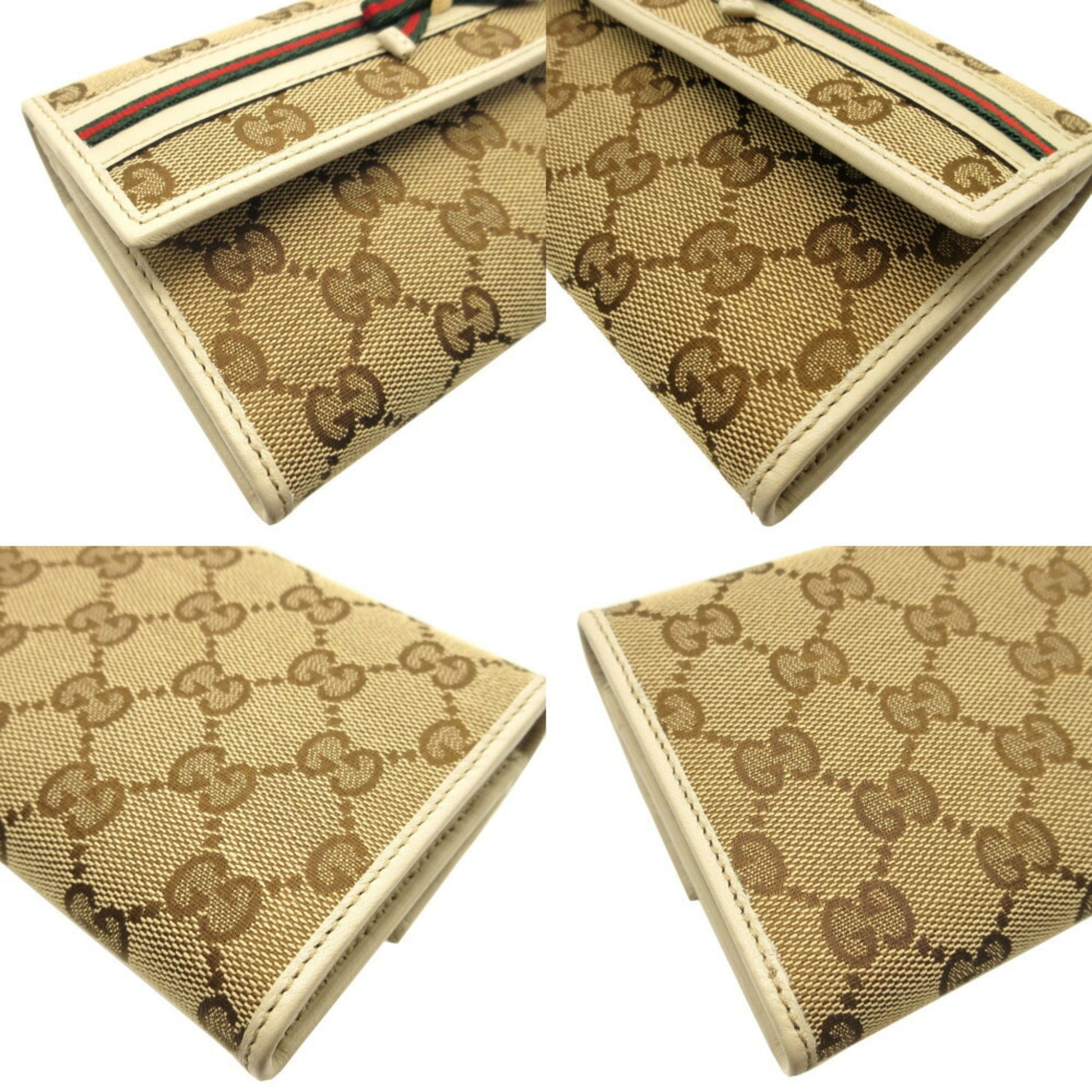 Gucci Sherry Line 256998 GG Canvas Leather Beige Bifold Long Wallet 5H0074GUCCI