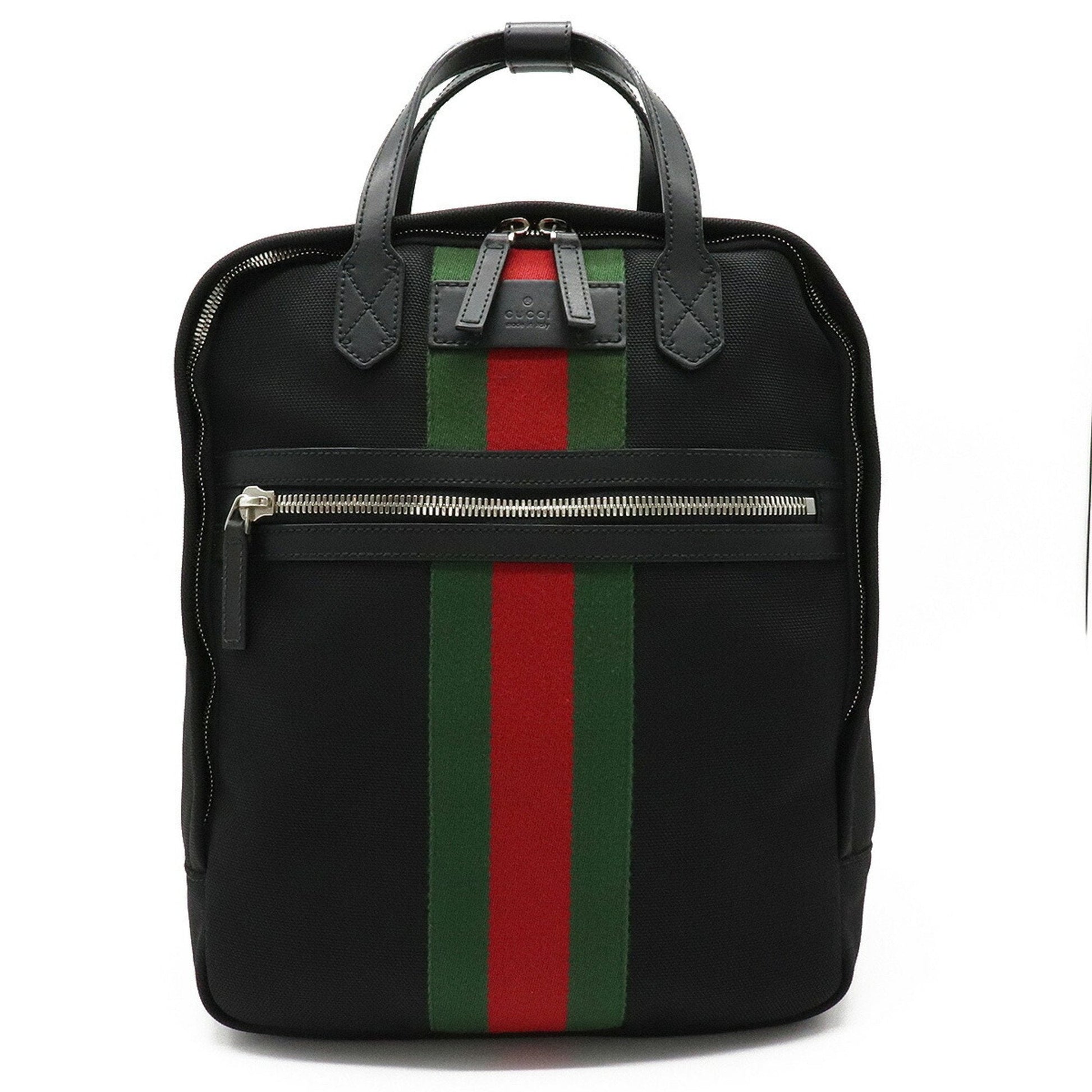 Gucci sherry line backpack rucksack techno canvas leather black green red 495558