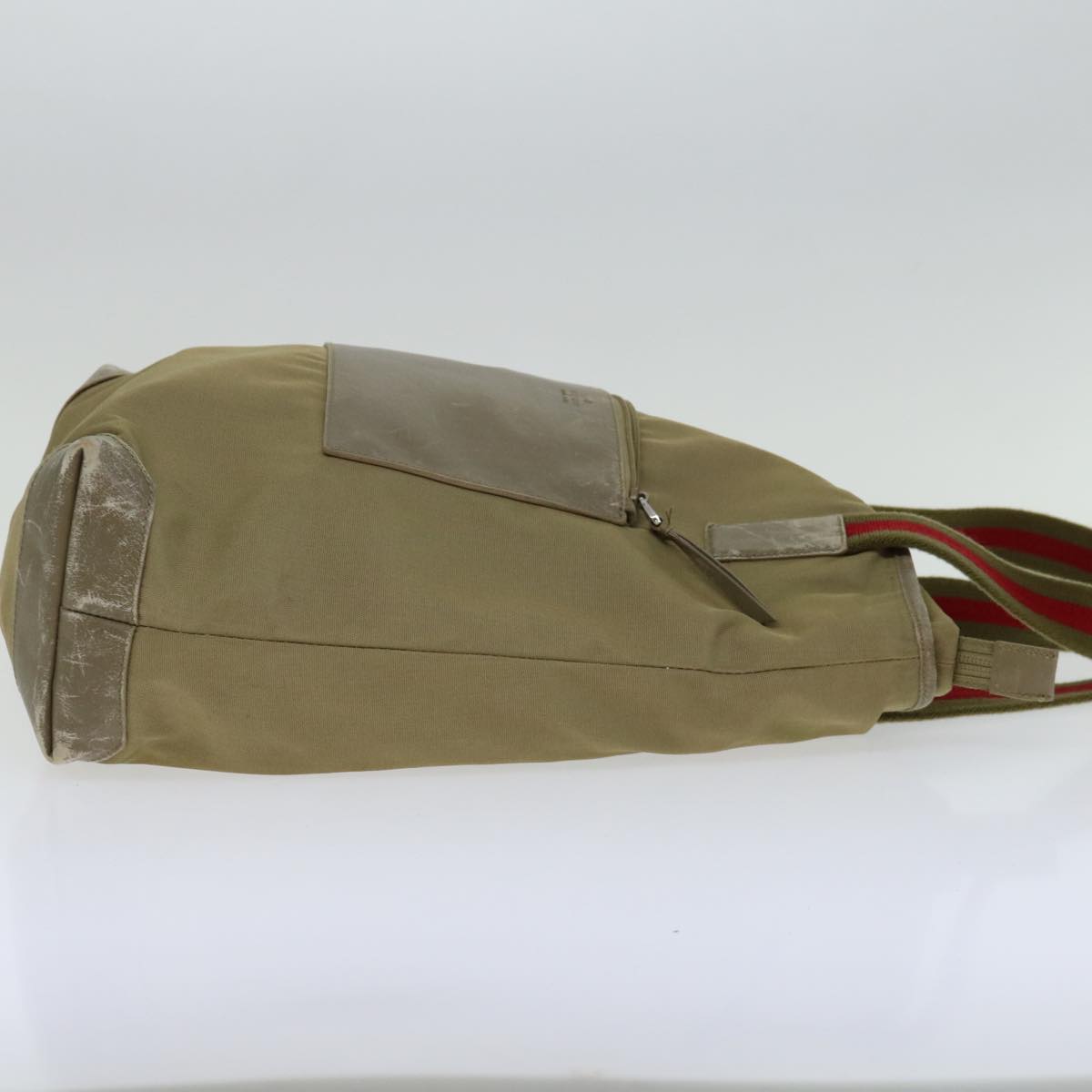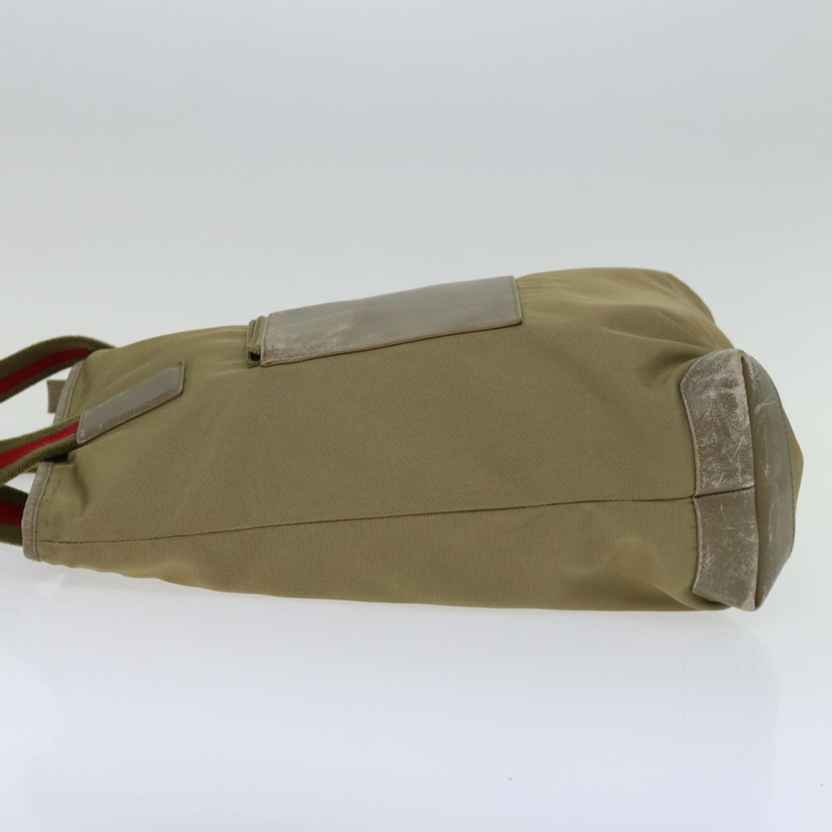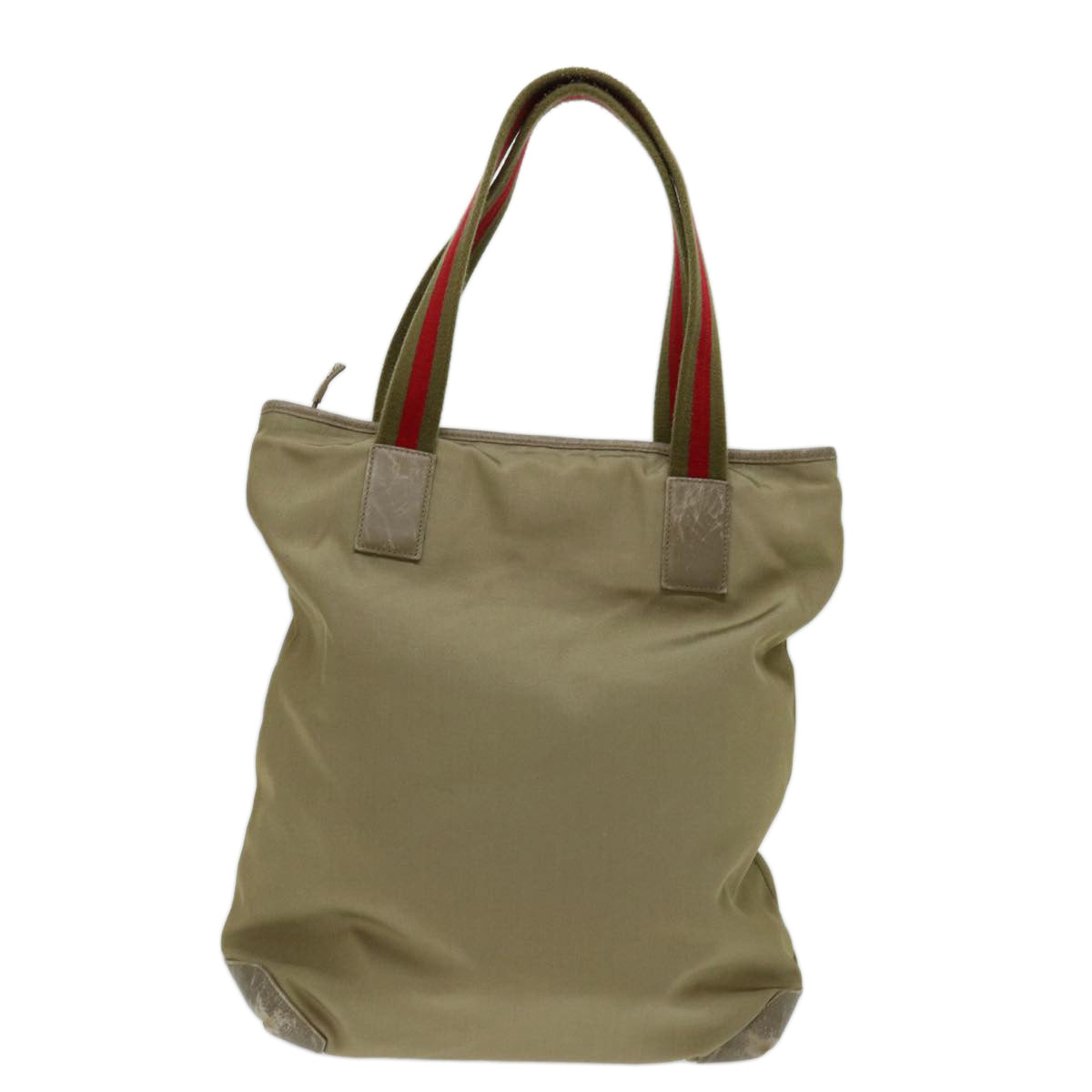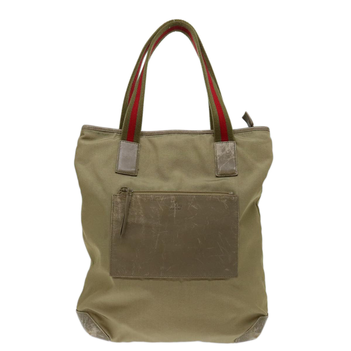 GUCCI Sherry Line Tote Bag Canvas Beige Red khaki 019 0401 Auth ti1583