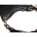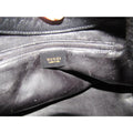 On the interior there is one main compartment with a back zipper pocket! The lining is a clean, black leather coating that has not started to peel the way so many of the linings in the purses from this line from Gucci with bamboo accents. It has been sealed to try to prevent the lining from starting the peeling process. If for some reason the sealing process doesn't prevent the leather coating from starting to peel while in storage, I will have the sticky leather coating professionally removed to reveal the fabric below. The purse has a serial number of 001.3008.002058.