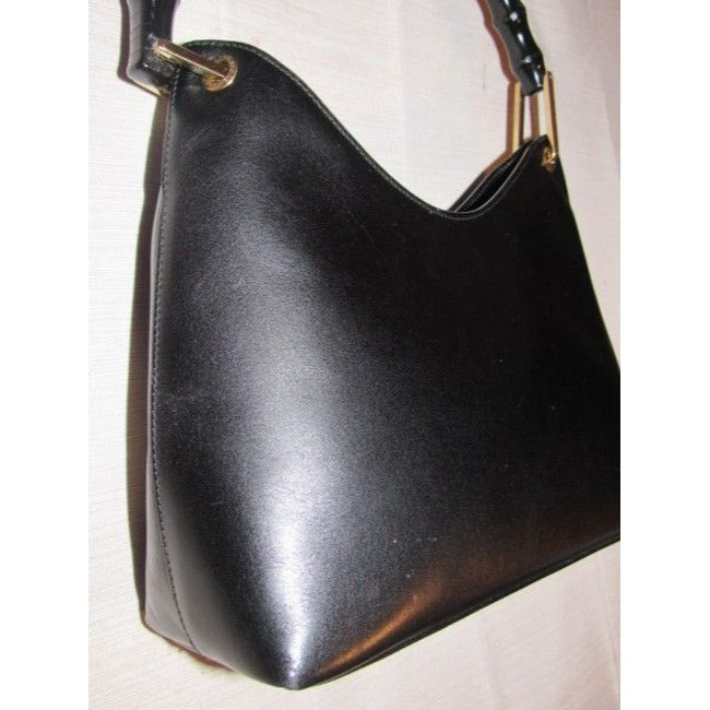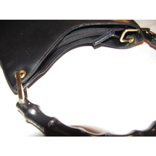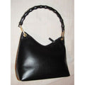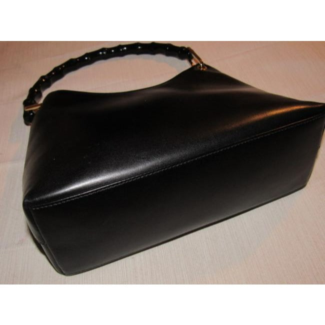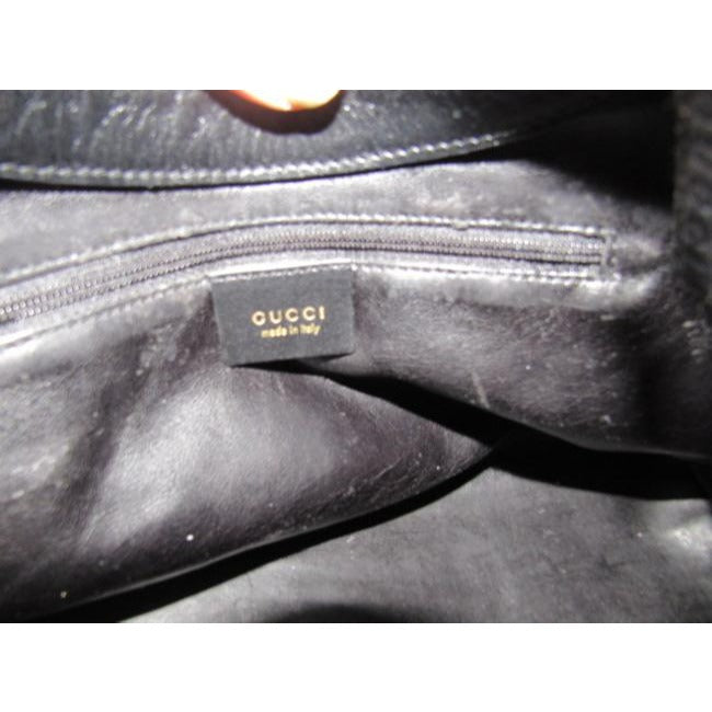 This is a true vintage find! Please note bag is vintage, so there are minor signs of use, such as shallow scratches on the super soft leather, which pretty much polished away- see pictures. You will be the only person with this rare gem from Gucci! You could dress it up or wear it with jeans and it would look great! This is the only black purse you will need! The bamboo handle purses came in a few sizes and this is the medium- I have the same purse listed in this size in suede & leather in black with a metallic G logo print, green with a khaki logo print, and brown with an attached wallet. I also have the extra large size in glossy black and the black suede with embossed G logo! DON'T MISS OUT!