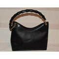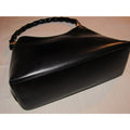 Gucci Shopper Tote With V Shaped Top Bamboo Handle Black Leather Hobo Bag