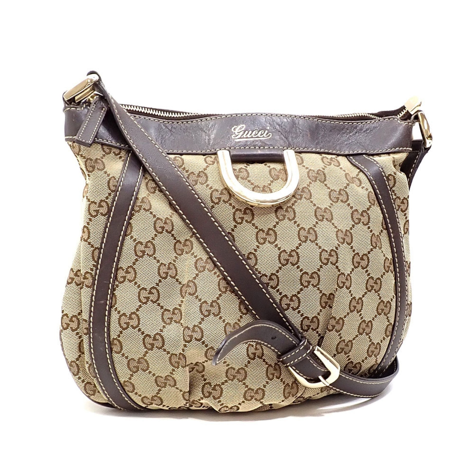 Gucci Shoulder Bag Abbey Women's Beige Brown GG Canvas Leather 203257