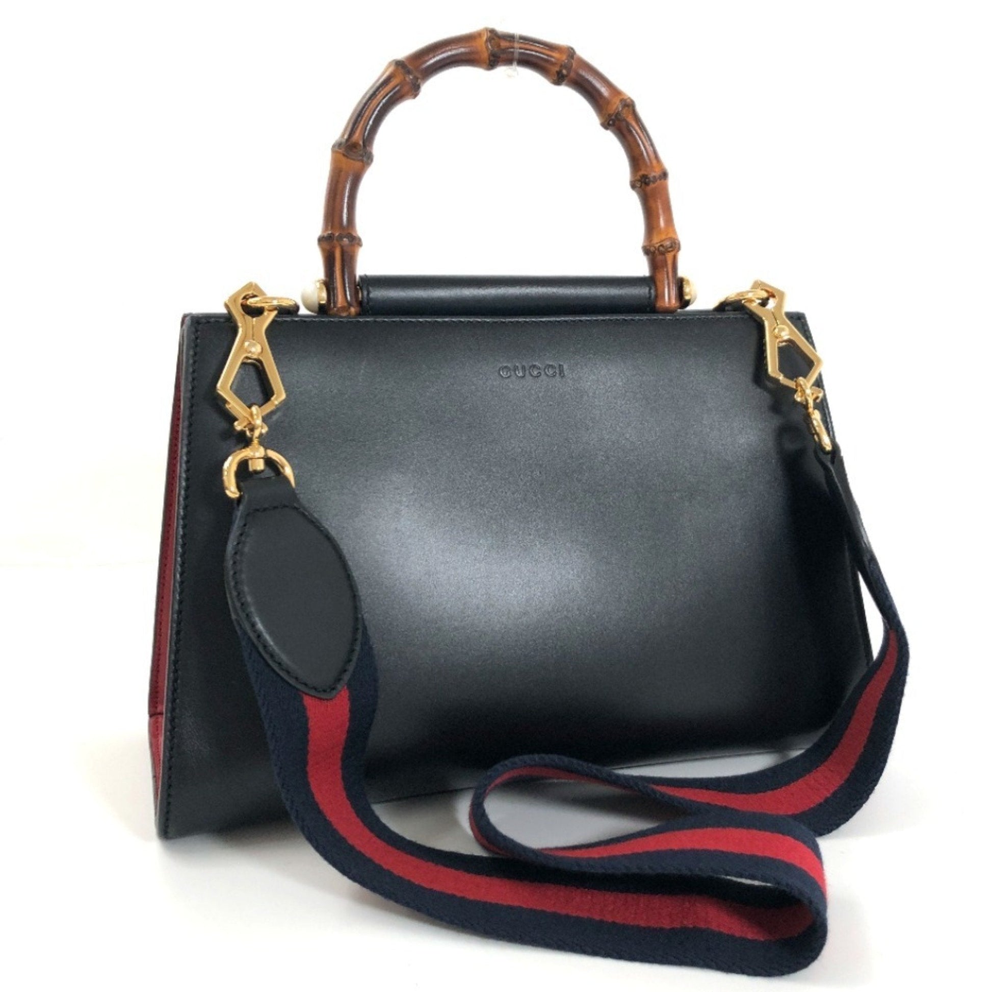 Gucci Shoulder Bag Bamboo Nim r Hand 459076 Leather Black Ladies GUCCI