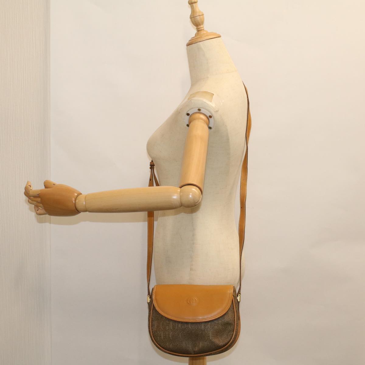 GUCCI Shoulder Bag Coated Canvas Brown 007 58 0074 Auth am5132