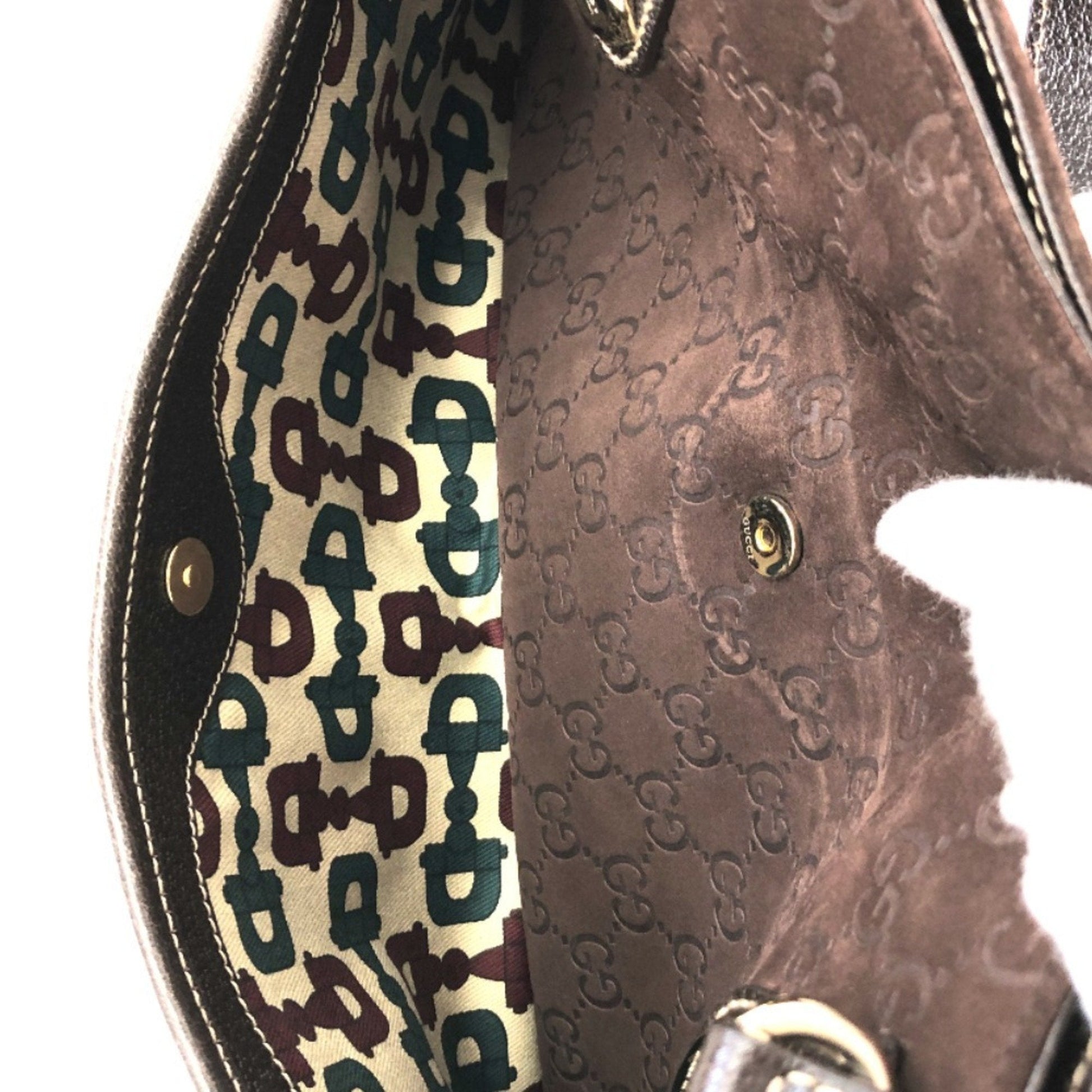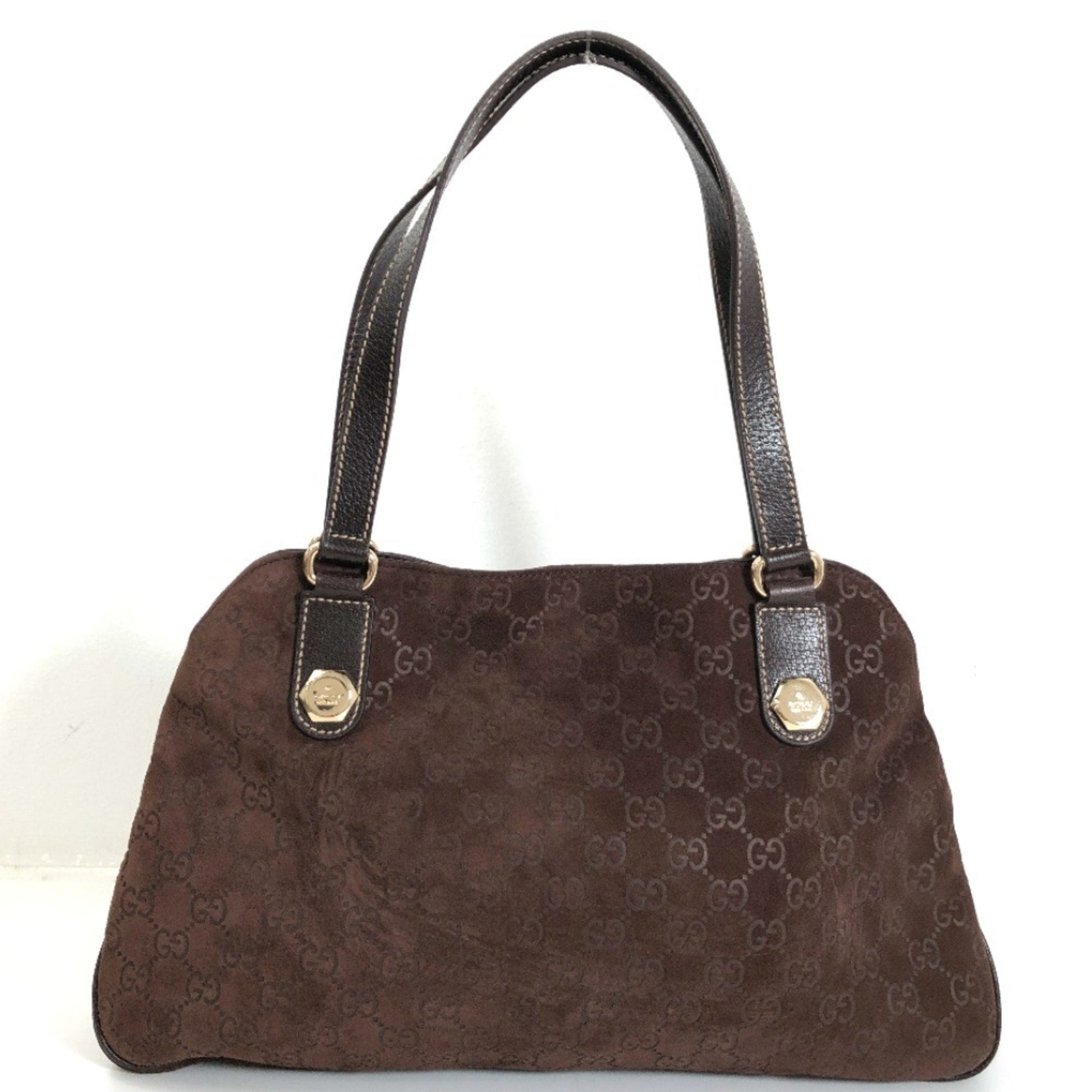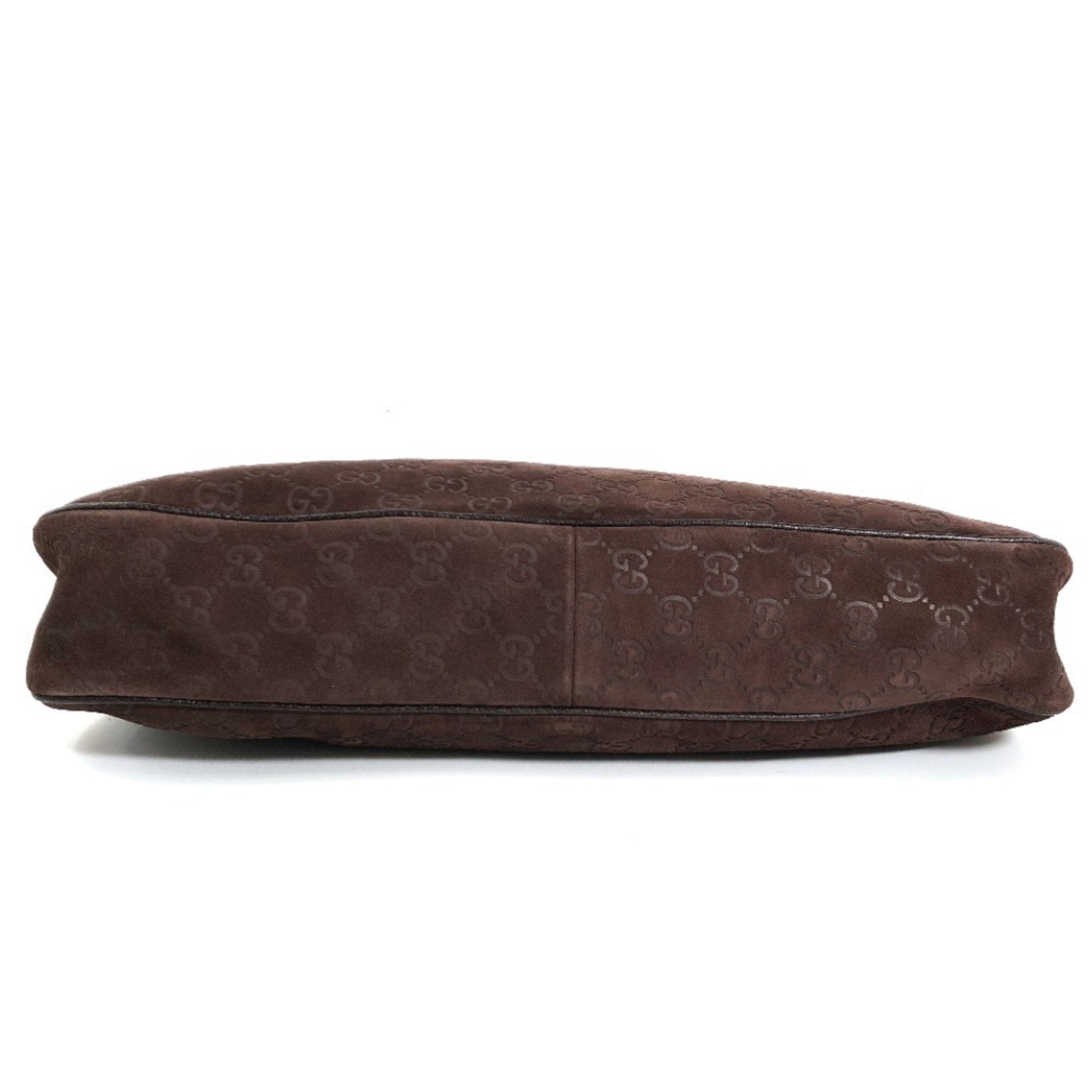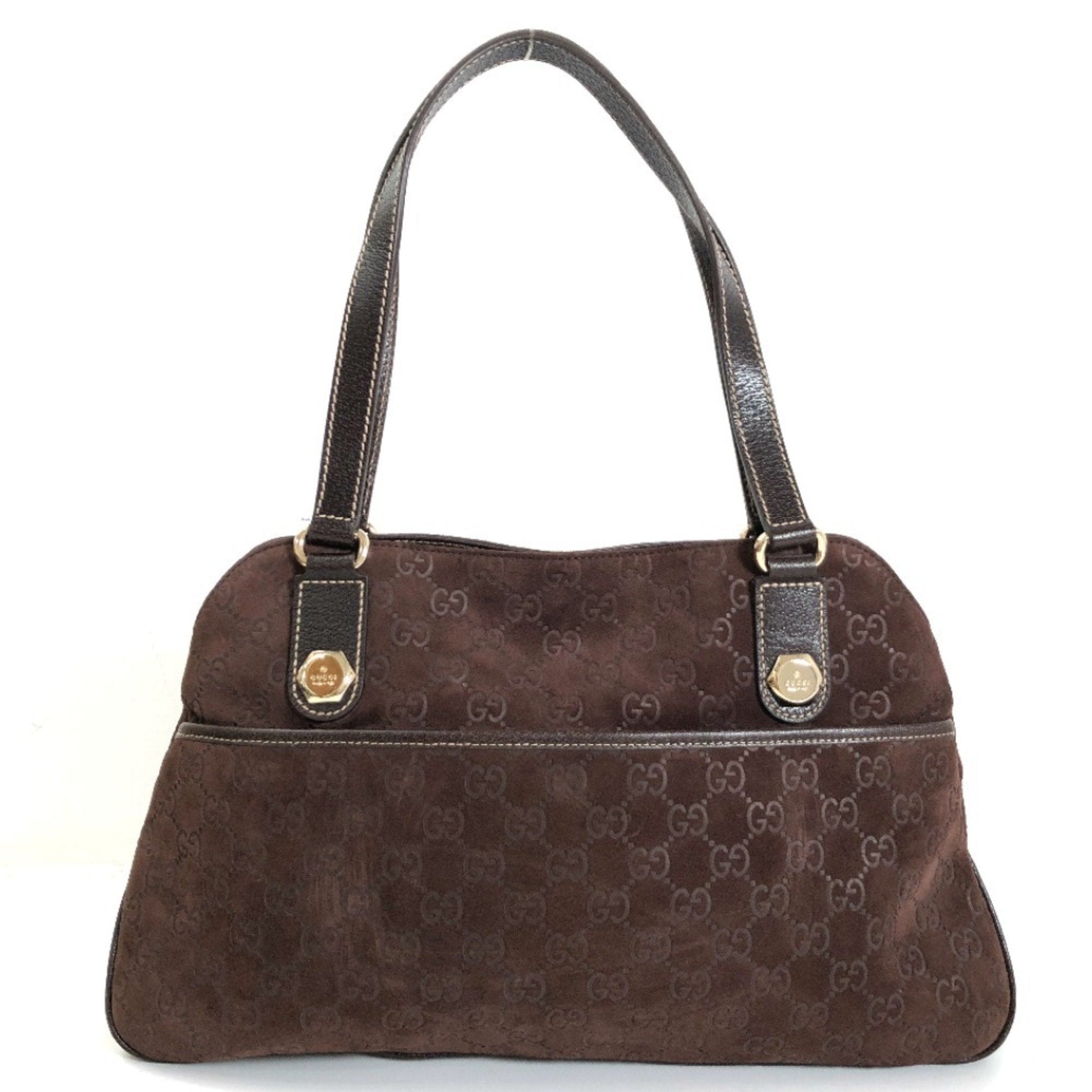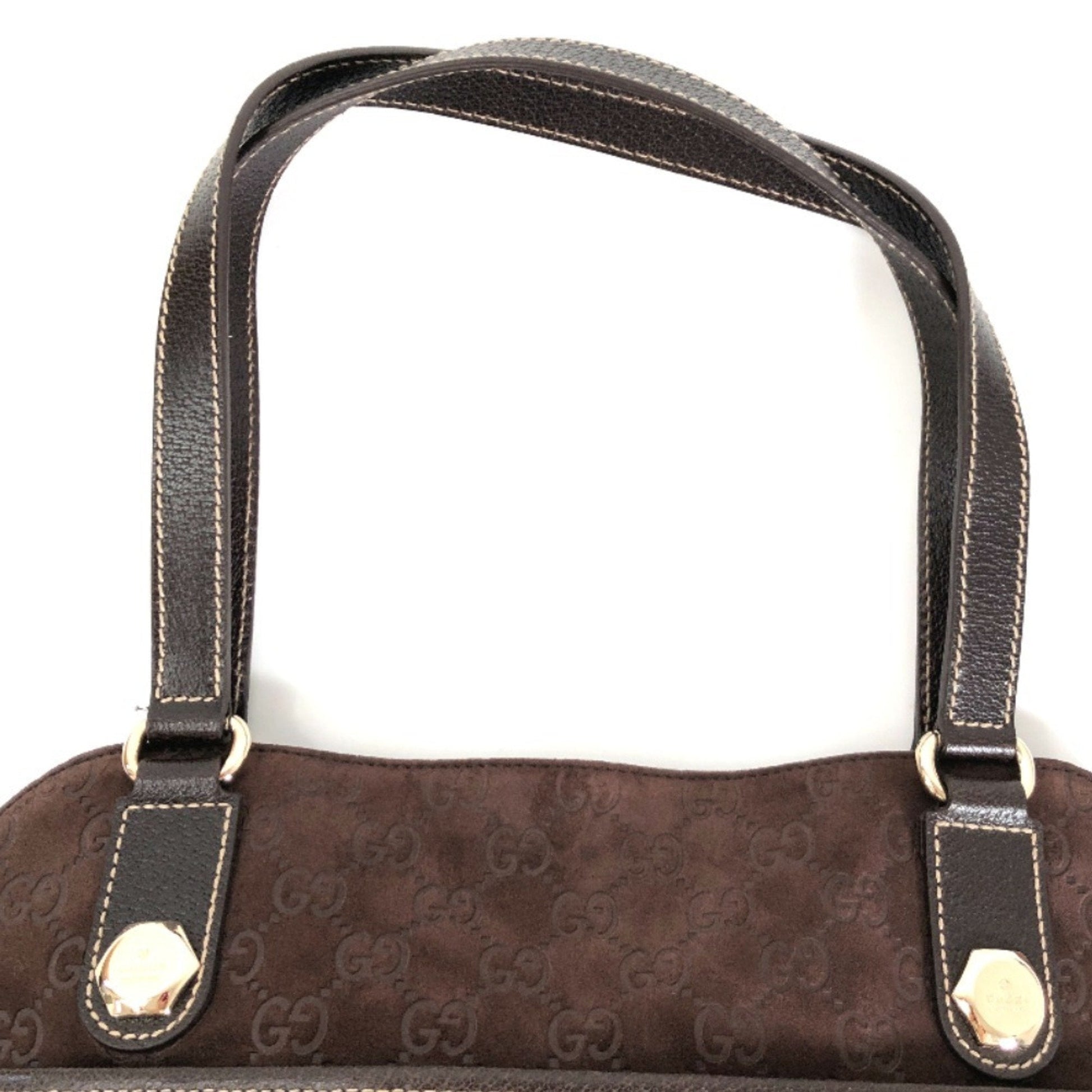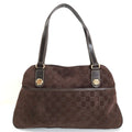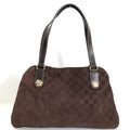 GUCCI shoulder bag GG pattern hand 163288 suede leather brown gold hardware ladies