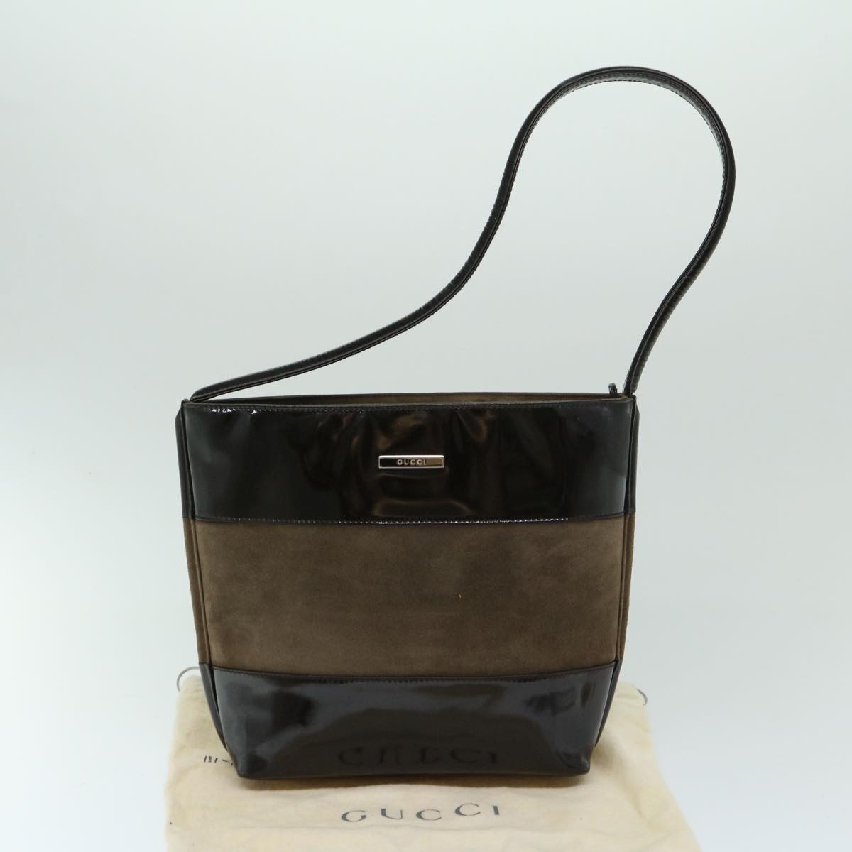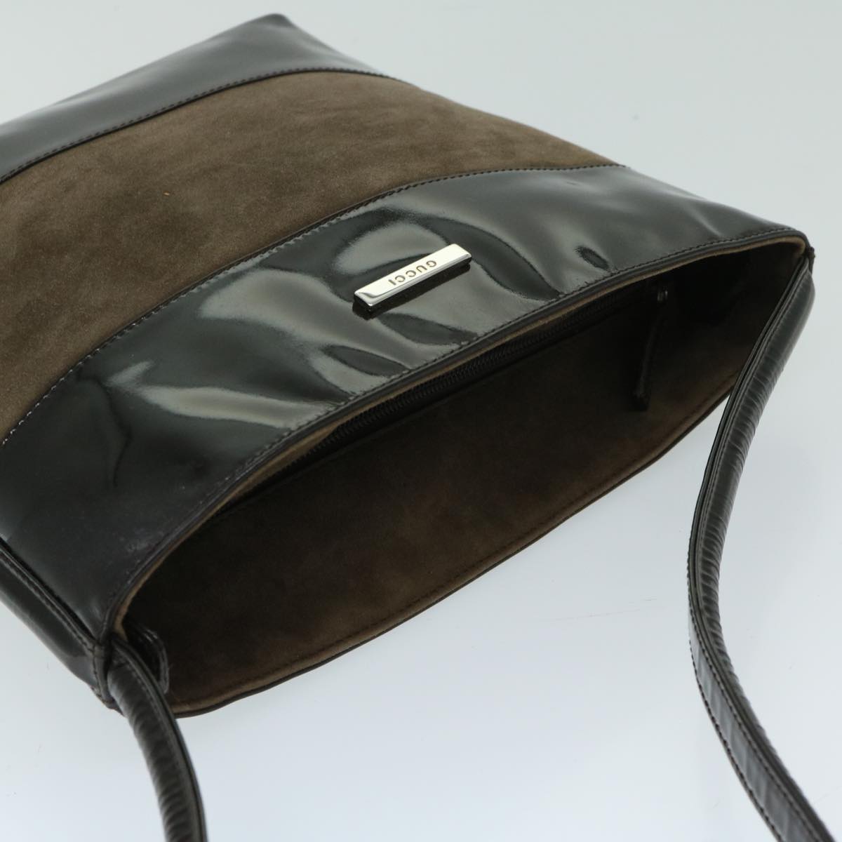 GUCCI Shoulder Bag Patent leather Brown Auth yk10956