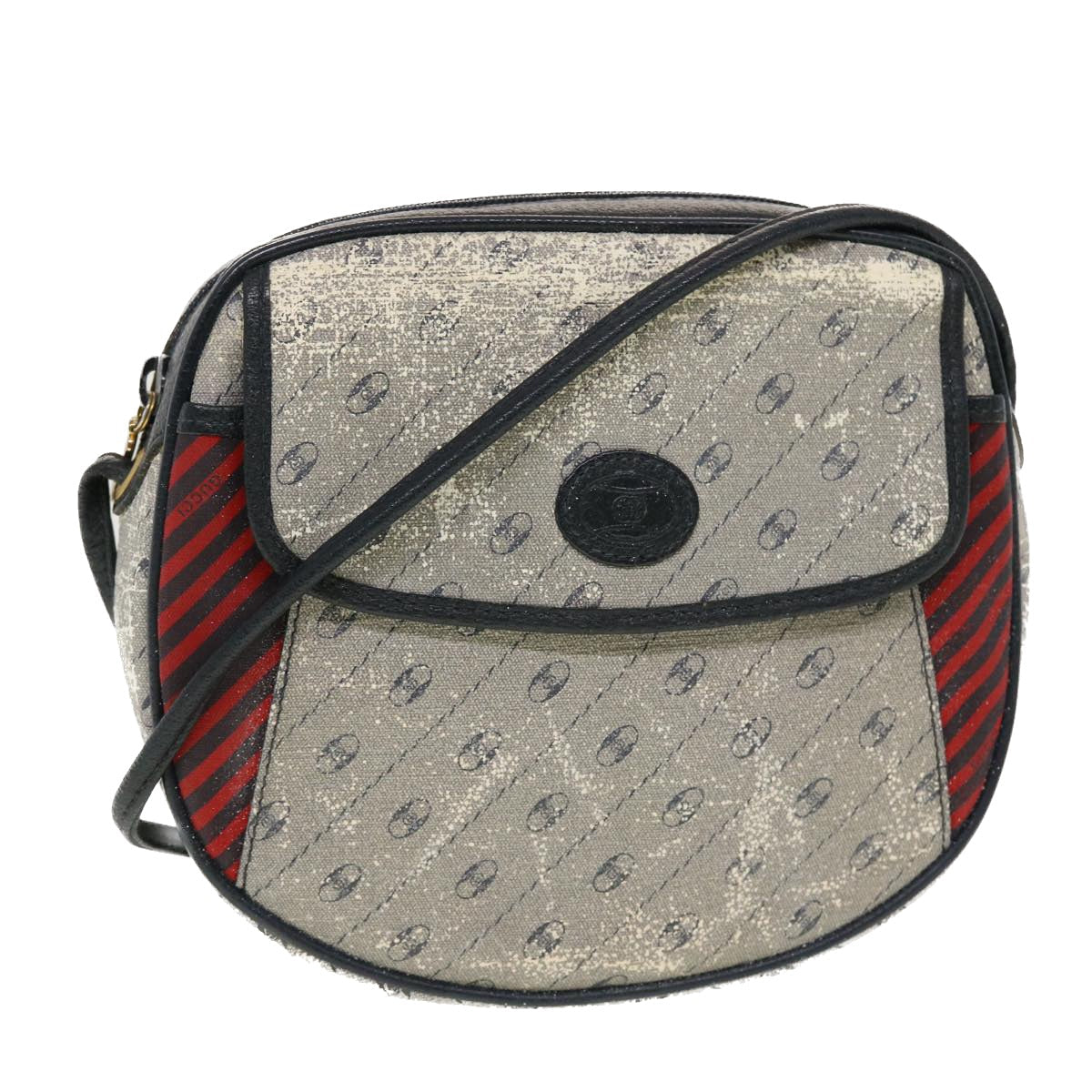 GUCCI Shoulder Bag PVC Leather Navy Gray Red ti1146