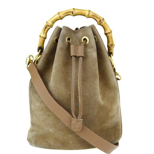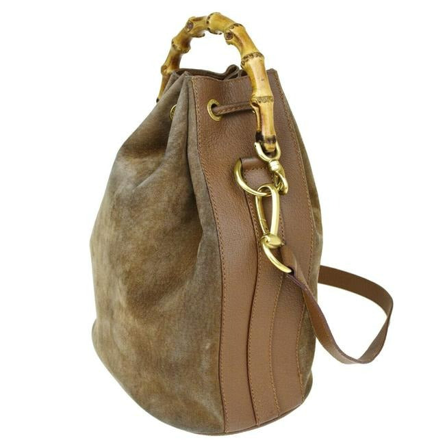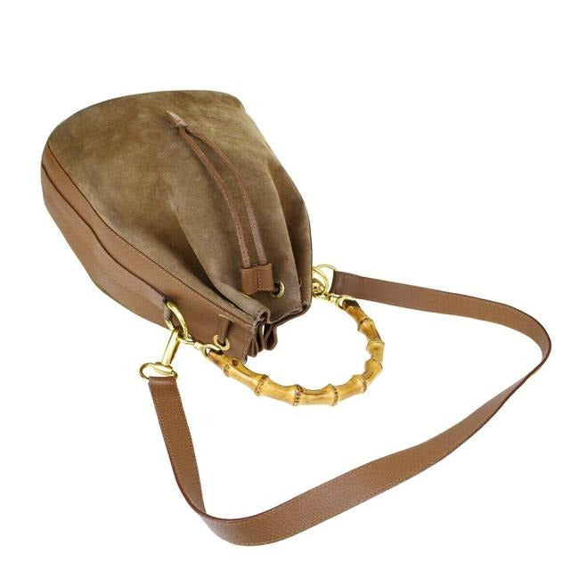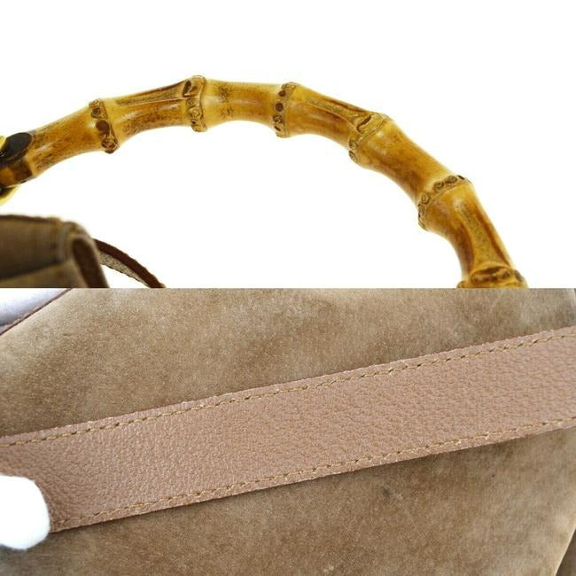 Gucci Shoulder Bag Tom Ford Leather Bamboo Line Two Way Beige Suede Satchel
