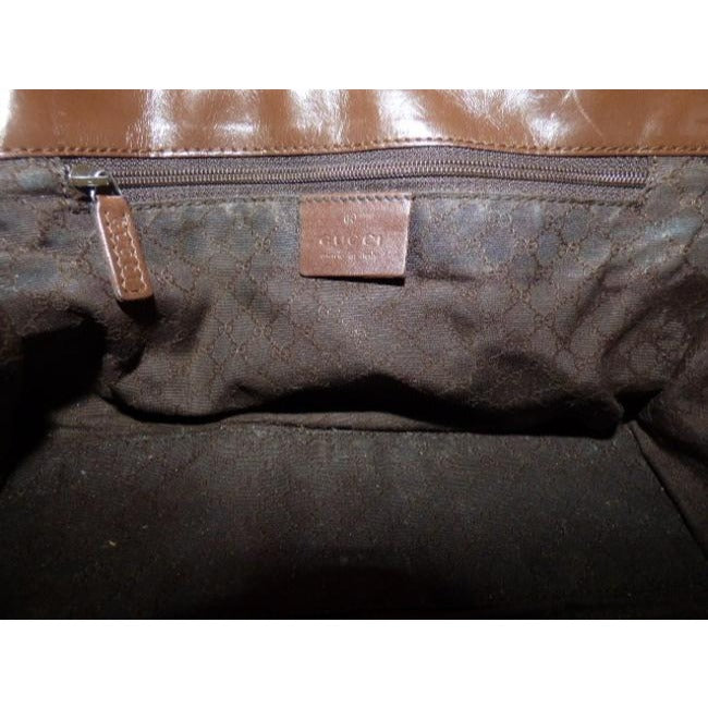 On the interior there is one main compartment with a back zipper pocket, lined in brown G logo print fabric. The bag has minimal wear to the exterior and the lining is very clean! It looks very lightly used! The purse has a serial number of 002.1068.002404.
