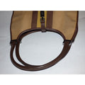 For sale is a Gucci, tan/khaki canvas body and brown leather with yellow and brown center stripe, two strap, 'Bardot' style, Jackie- O bag with chrome, push button closure and flip top closure! It is a the original 1960's classic mod style from Gucci with a modern twist that would be great used as your signature purse!