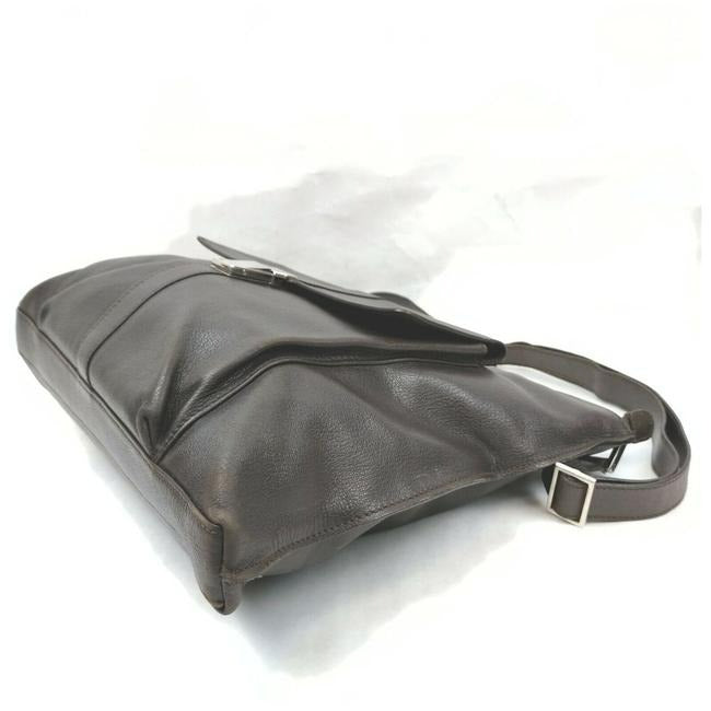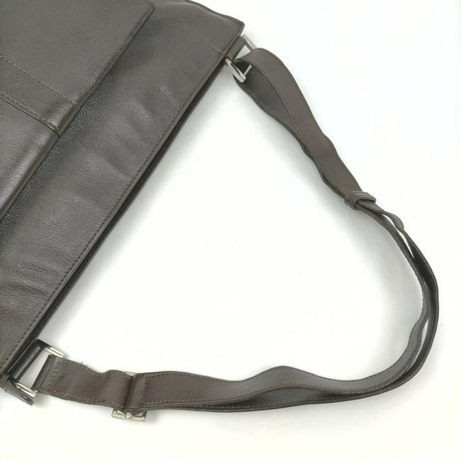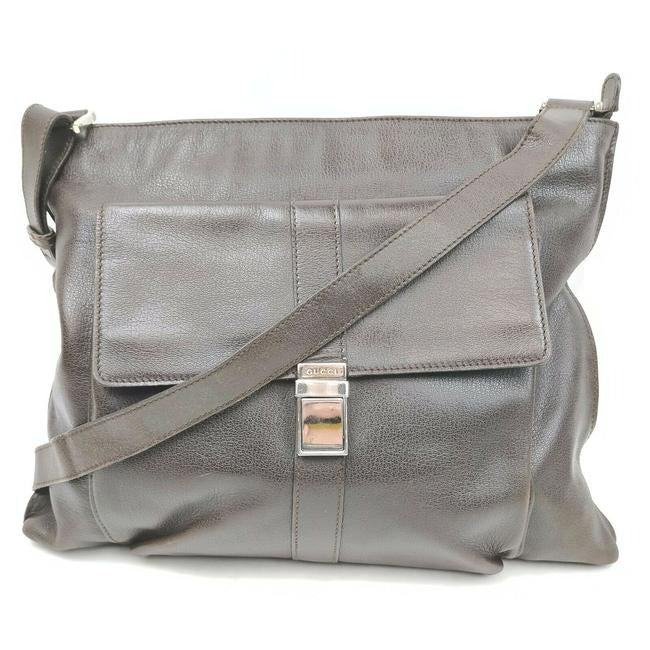The bag is a unisex zip top, cross body, messenger, or shoulder bag. The body is made of rich brown leather with pockets on the exterior. It is a rectangular shape with polished chrome hardware. On the front, there is one large pocket with a chrome push clasp at the center where it closes that is engraved 'Gucci'! The strap is long and wider, and can be doubled up if you would like to shorten it.