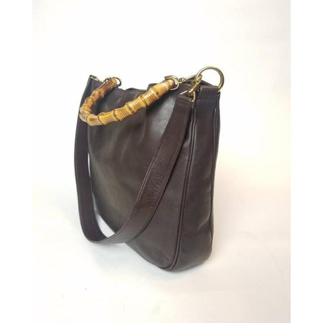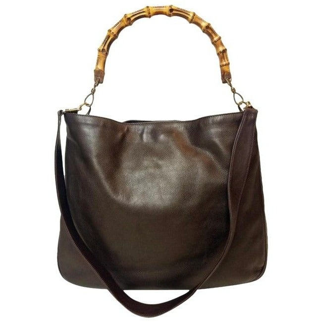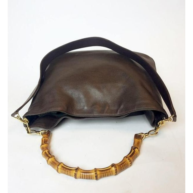 Gucci Shoulder W Two Way Style Handle Brown Leather Bamboo Hobo Bag