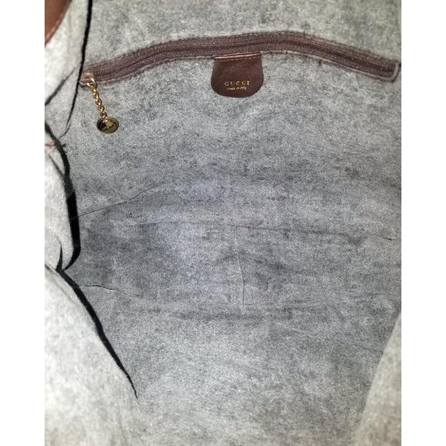 Inside, it had the same peeling leather upper lining as most pieces from this original Gucci bamboo line had which was deteriorated and made the purse unusable as it was. Because of this, the lining of the bag was professionally restored and the leather upper was removed so all that is left is the fabric below. It has one compartment and a zip close, pocket.