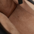 The Nymphaea features a pony hair and leather body, a bamboo handle, a detachable flat shoulder strap, a top magnetic closure, and an interior zip pocket.