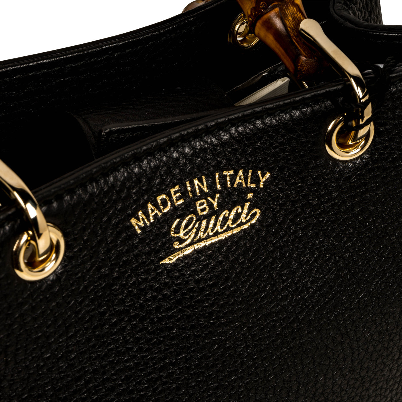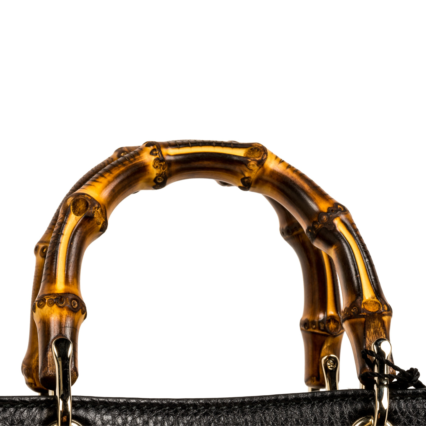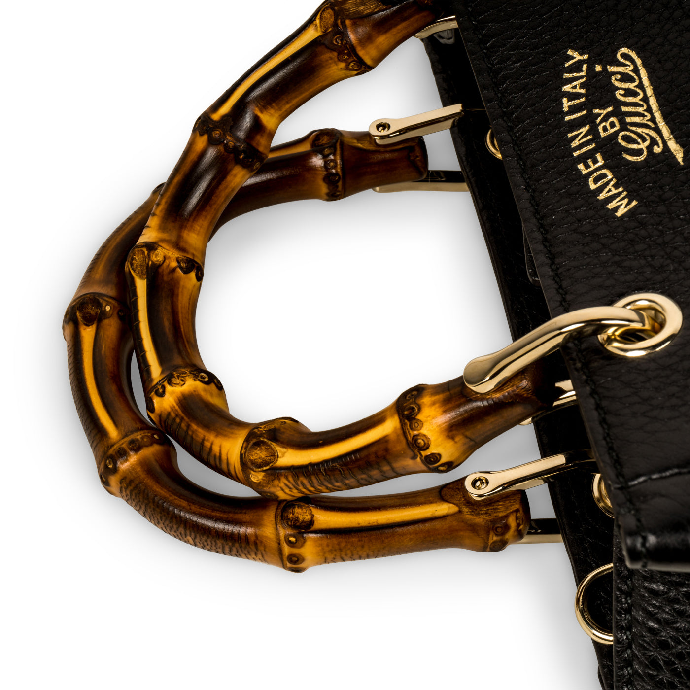 The Small Bamboo Shopper Tote has a truly bohemian and earthy feel. Made with the stalks of the bamboo tree, its handles enable perfect grip in between the ridges, furthermore the adjustable and removable strap allows for shoulder use. With multiple compartments and pockets available, this bag is full of resources. Crafted naturally by Gucci.?ÿ