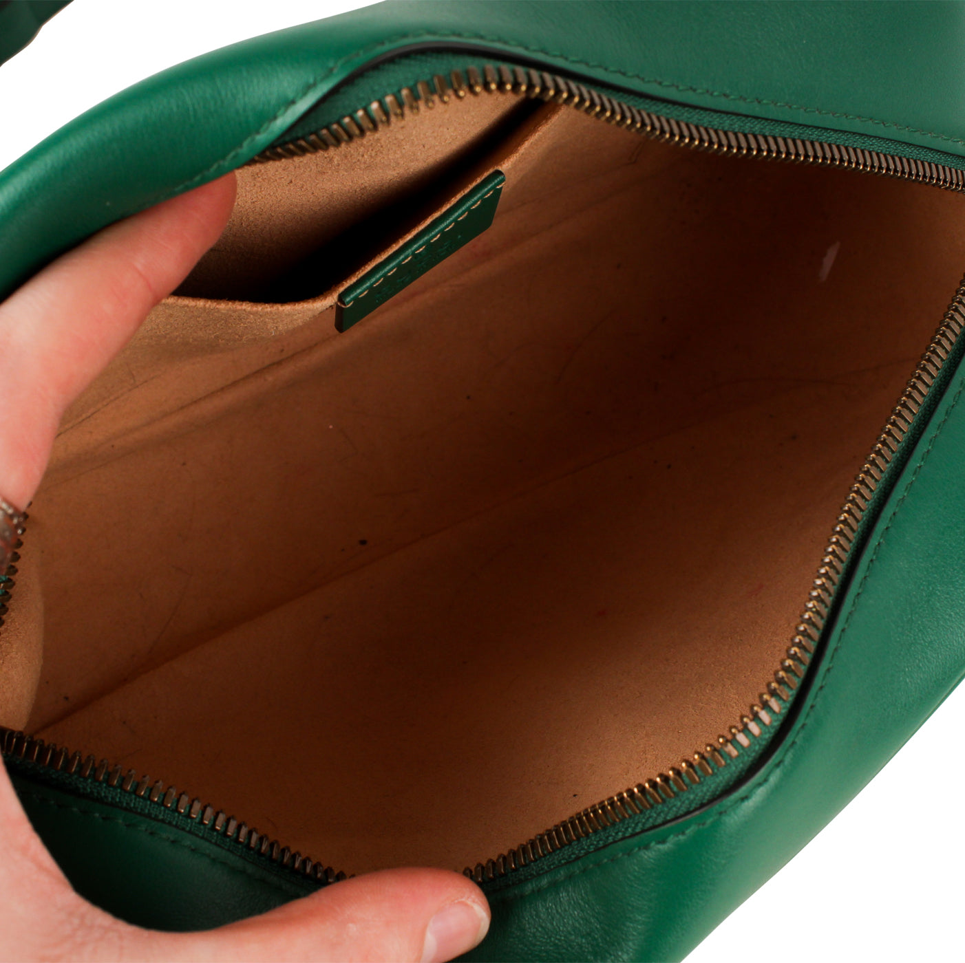 The Gucci Marmont matelassé camera bag is a perfect compact bag. The unique logo plaque has been revived from their archives of the 70’s era for the brand, and the green will add a pop of colour to all your monochrome outfits. The chevron stitching brings the bag back to modern day and adds interest a little bit of interest to the eye. This bag features a chain and leather strap which makes it the perfect sophisticated crossbody for day or night, and gives you hands free access.