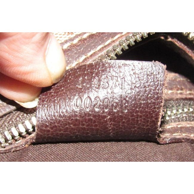 Inside, it has a brown fabric lining that is very clean. There is one main interior compartment with an interior zip pocket. Above the interior zip pocket, there is an embossed leather tag that reads, 'Gucci, made in italy' on the front and has the serial #154371 002053 embossed on the back. It is a hard to find, limited edition Gucci and will always be in style! It will have an entire life to live with you- don't miss out!